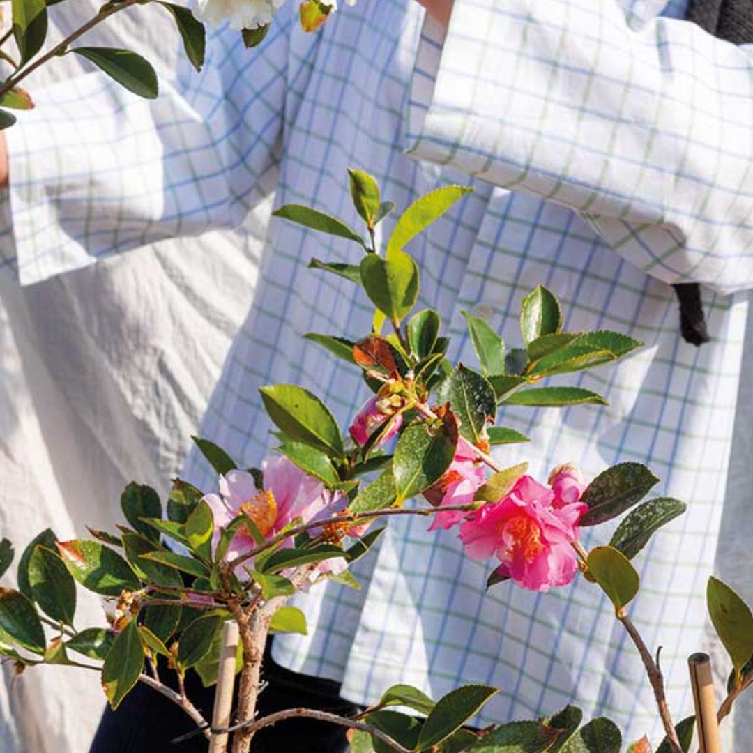 Υστερα από μακρό διάστημα εμφύλιων πολέμων, στις αρχές του 17ου αιώνα επικρατούσαν στην Ιαπωνία συνθήκες ειρήνης και σταθερότητας που ευνοούσαν την ανάπτυξη όλων των τεχνών. Αρχισαν τότε να καλλιεργούνται για πρώτη φορά αρκετά ιθαγενή φυτά, με σκοπό την ικανοποίηση της ακόρεστης ανάγκης των Ιαπώνων να εξελίσσουν διαρκώς την παραδοσιακή κηποτεχνία τους. Ανάμεσα σε αυτά ήταν το σαζάνκα (σημαίνει «άνθος του ορεινού τσαγιού»), που ευδοκιμεί σε δάση μέσου υψόμετρου των μεγάλων νησιών του νότου. Έναν αιώνα αργότερα, στην ακμάζουσα φυταγορά του Τόκιο, που τότε ονομαζόταν Έντο, έβρισκε ήδη κανείς αρκετές καλλωπιστικές ποικιλίες με άνθη και φύλλα μεγαλύτερα από εκείνα του προγόνου τους. Παρότι οι εξαγωγές προς τη Δύση ελέγχονταν με μεγάλη αυστηρότητα, Άγγλοι εξερευνητές και Ολλανδοί έμποροι κατόρθωσαν να αποκτήσουν και να μεταφέρουν ζώντα κάποια φυτά στις χώρες τους. Προς ευχάριστη έκπληξη των κηπουρών που ανέλαβαν την προστασία τους, αποδείχτηκε πως η ανθεκτικότητά τους στις συνθήκες του ευρωπαϊκού χειμώνα ήταν μεγάλη. Δόθηκε έτσι μια νέα ώθηση για διασταυρώσεις, που έδωσαν ως αποτέλεσμα τις λίγες δεκάδες ποικιλίες που καλλιεργούνται μέχρι σήμερα. Τούτες διακρίνονται με βάση το ύψος που λαμβάνουν, αλλά κυρίως τους χρωματισμούς της ανθοφορίας τους, οι οποίοι κινούνται στην περιοχή του χιονόλευκου ή ανάμεσα σε ρόδινους και ερυθρούς τόνους. Μη φανταστείτε ότι διατίθενται εδώ όλες· με λίγο ψάξιμο πάντως εντοπίζονται οι βασικές πινελιές που ταιριάζουν στον κήπο μας. Θα επιλέξετε ποικιλίες που δεν ψηλώνουν παραπάνω από δύο μέτρα, ώστε να μην ασφυκτιούν στη γλάστρα, εκτός φυσικά αν είστε διατεθειμένοι να υποβληθείτε σε κόπους και έξοδα για να τους προσφέρετε τις εδαφικές συνθήκες που προτιμούν.