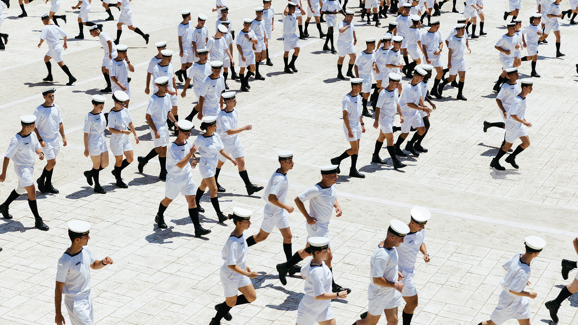 Ήταν αρχές Ιουνίου όταν βρεθήκαμε στη Σχολή Ναυτικών Δοκίμων (ΣΝΔ) στον Πειραιά με σκοπό να παρακολουθήσουμε μια μέρα στη ζωή των νέων που έχουν αποφασίσει να ακολουθήσουν καριέρα στο Πολεμικό Ναυτικό (ΠΝ). Η αρχική σιγή πέρα από τις πύλες της Σχολής λειτουργεί ελαφρώς παραπλανητικά, καθώς οι εγκαταστάσεις είναι διαρρυθμισμένες με τέτοιο τρόπο, που δίνουν την ψευδαίσθηση ότι ο τόπος δεν σφύζει από ζωή. Η εντύπωση αυτή είναι λανθασμένη. Λίγο παρακάτω, δύο δόκιμοι τρέχουν με τα κοντά σορτσάκια τους και κρύβονται πίσω από ένα κτίριο. Τους ακολουθούμε και ξαφνικά βρισκόμαστε μπροστά σε μια ομάδα από δεκάδες 19χρονους και 19χρονες πρωτοετείς που γελούν και αφήνουν να βγει προς τα έξω μια παιδιάστικη ανεμελιά μπροστά στον φακό του φωτογράφου μας Δημήτρη Βλάικου. Ήταν το διάλειμμά τους. Ένα περιορισμένο παράθυρο ανάμεσα στο τρέξιμο, τα μαθήματα, την αθλητική δραστηριότητα και τις υπόλοιπες υποχρεώσεις της ημέρας, που ακολουθούν όλες ένα χρονοδιάγραμμα το οποίο τηρείται ευλαβικά.