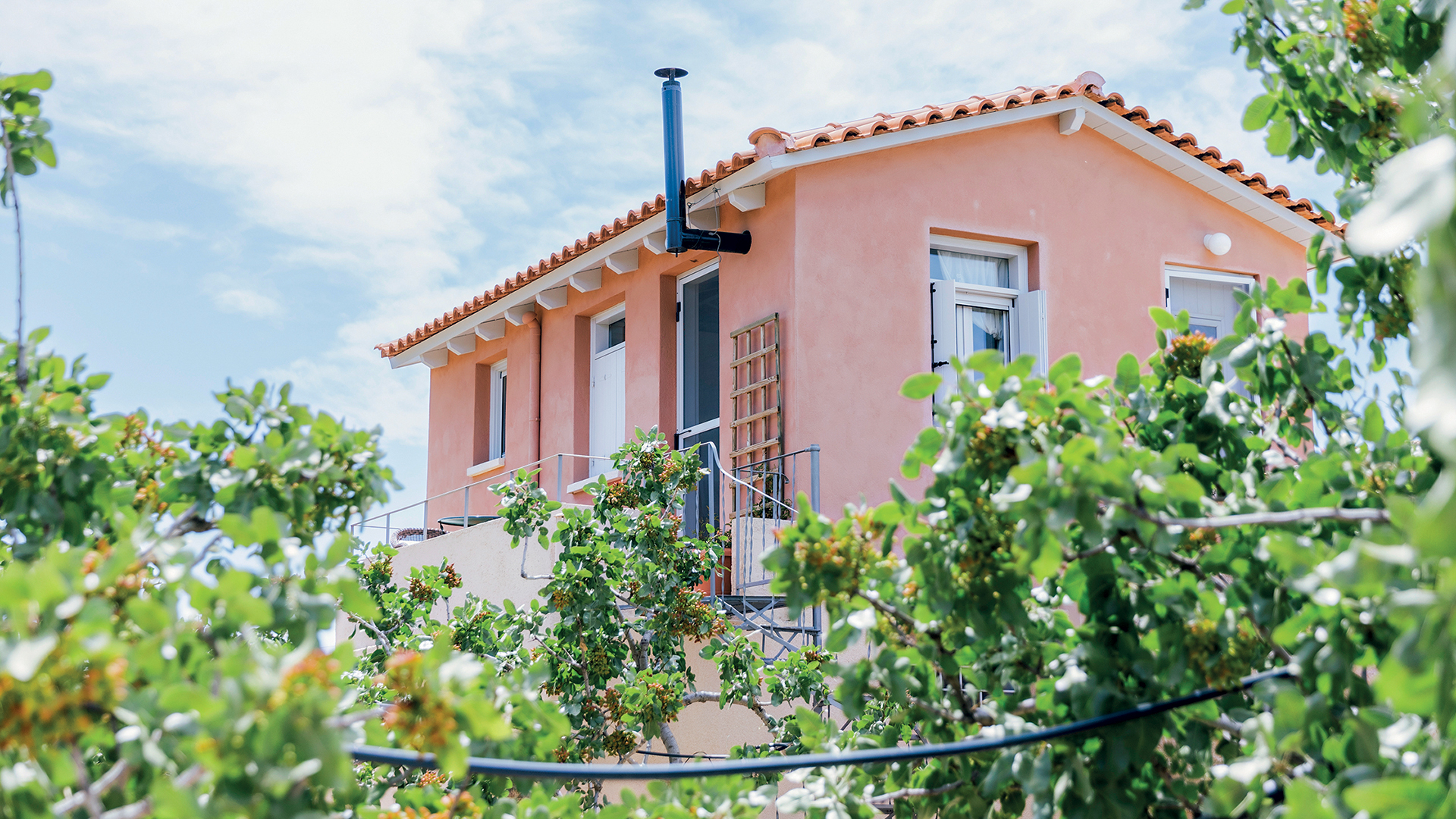 Οδηγώντας μόλις τρία λεπτά, με τη βοηθό της σκηνοθέτιδας, Αριάδνη Κωνσταντακοπούλου, και τους ηθοποιούς της παράστασης Αλεξάνδρα Καζάζου, Βασίλη Τρυφουλτσάνη και Γιάννη Ψαλλιδάκο, φτάνουμε σε λίγο στον χώρο όπου μένουν. Πρόκειται για ένα κτήμα με κατασκευές και ανακαινισμένα κτίσματα, γύρω από τα οποία κάποτε υπήρχαν αμπέλια. Ένα σπιτάκι ήταν πατητήρι, άλλο χοιροστάσιο, άλλο μηχανοστάσιο. Εδώ, τα μέλη της ομάδας μπορούν να απομονωθούν όποτε θέλουν, αφήνοντας μετά από ένα πρωινό προβών όσα αποκόμισαν, να «καθίσουν» μέσα τους. Παραδίπλα, μέσα στο κτήμα φαίνεται ένα μικρό ιδιωτικό θέατρο, μια σκηνή που φιλοξενεί καλλιτεχνικές βραδιές για παραθεριστές και μόνιμους κατοίκους του νησιού. Η Όλια Λαζαρίδου μού εξηγεί ότι στόχος είναι στο μέλλον να φιλοξενήσει και σεμινάρια. Μια αιώρα κι ένας χώρος για αυτοσχέδιες προβολές «θερινού σινεμά» συμπληρώνουν τις μικρές ψηφίδες αυτού του ιδιότυπου οικιακού μωσαϊκού. Πρόκειται για τη βάση τους. Κάποιοι από τους ηθοποιούς οδηγούν ένα δεκάλεπτο με το ποδήλατο μέχρι να φτάσουν στο κέντρο, άλλοι πετάγονται για μια βουτιά στη θάλασσα μετά το πρωινό τους ξύπνημα.