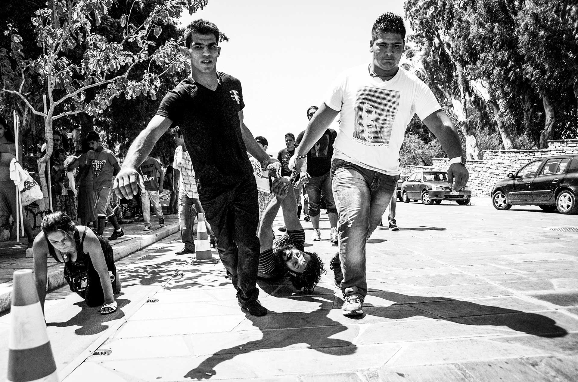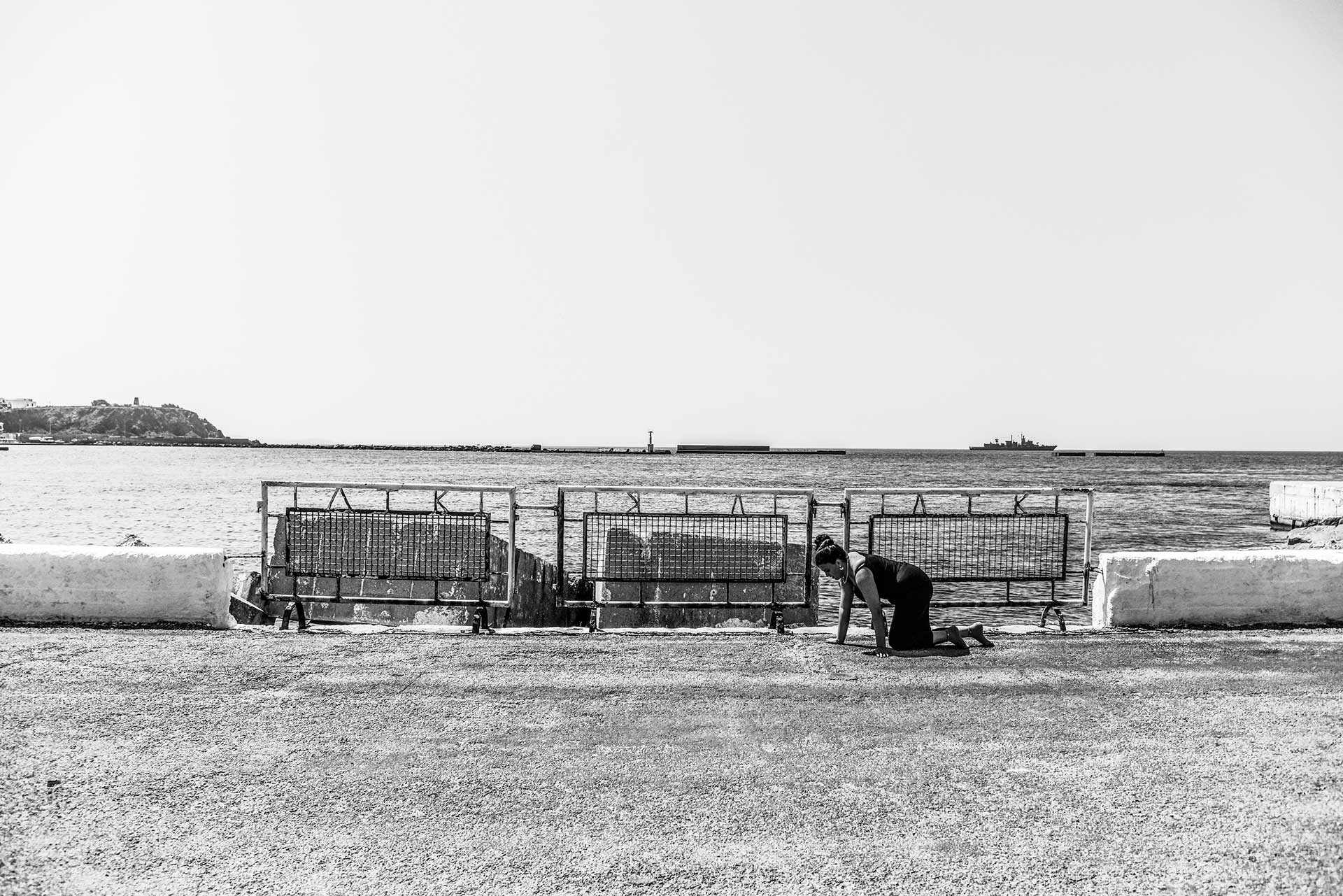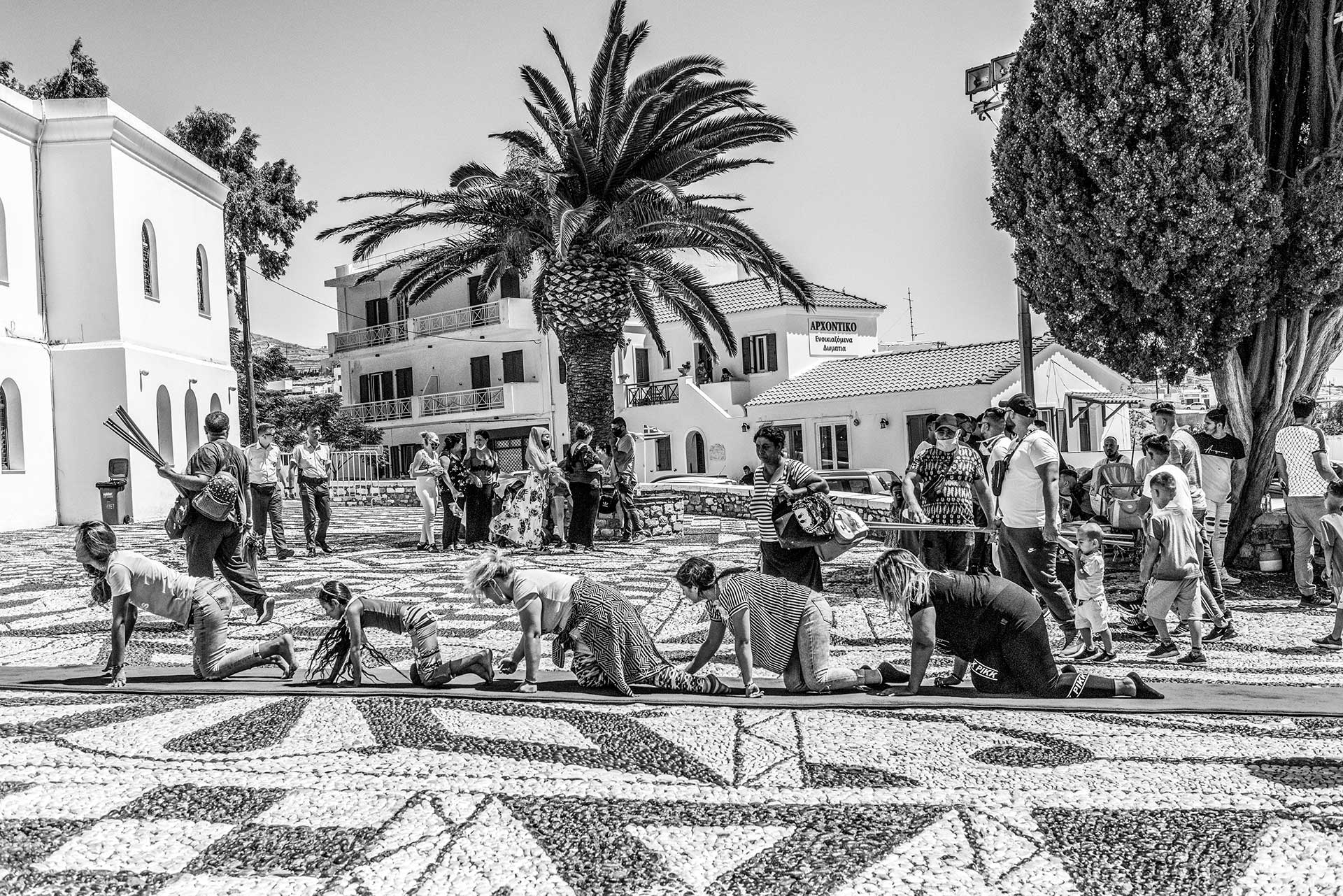 Η φωτογράφος Έβελυν Φωσκόλου, γέννημα θρέμμα της Τήνου, καταγράφει με την κάμερά της εδώ και δέκα χρόνια αυτή την τελετουργική πορεία που κάνουν γονυπετείς οι πιστοί από το λιμάνι έως την είσοδο του ναού, θέλοντας έτσι να τηρήσουν κατά γράμμα την υπόσχεση που έδωσαν στην Παναγία. Ο καθένας για τους λόγους του, όλοι όμως με την απαντοχή της ίασης.