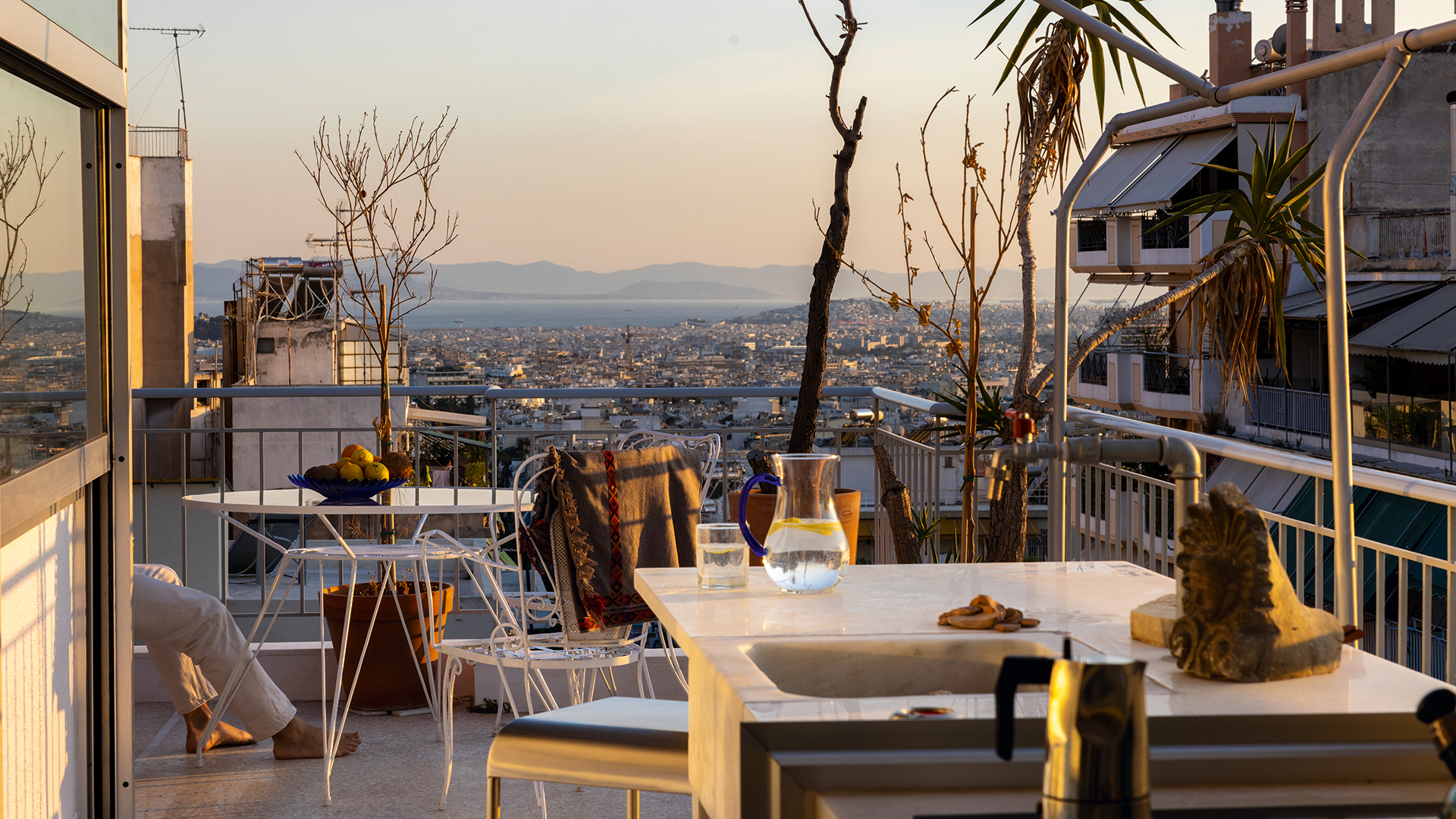 Διάλεξα αυτό το σπίτι: Το βρήκα τυχαία, όταν μου ακύρωσαν ένα άλλο που είχα κλείσει. Ήταν εντελώς αδιαμόρφωτο, αλλά είχε προοπτική, ακριβώς όπως εγώ σ’ εκείνη τη φάση της ζωής μου. Μαζί με τη φίλη μου, την αρχιτέκτονα Ράνια Αραβίδου, το φανταστήκαμε σαν γλυπτό στον ουρανό και το δουλέψαμε.