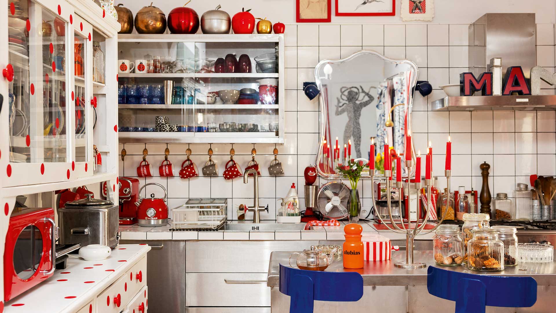 Κάτι κιτς: Φλερτάρω συχνά ανάμεσα στο ποπ και το κιτς… Μια συλλογή από τσαγιέρες ή μάλλον τα μεγάλα κόκκινα χείλη που κρέμονται στον τοίχο!