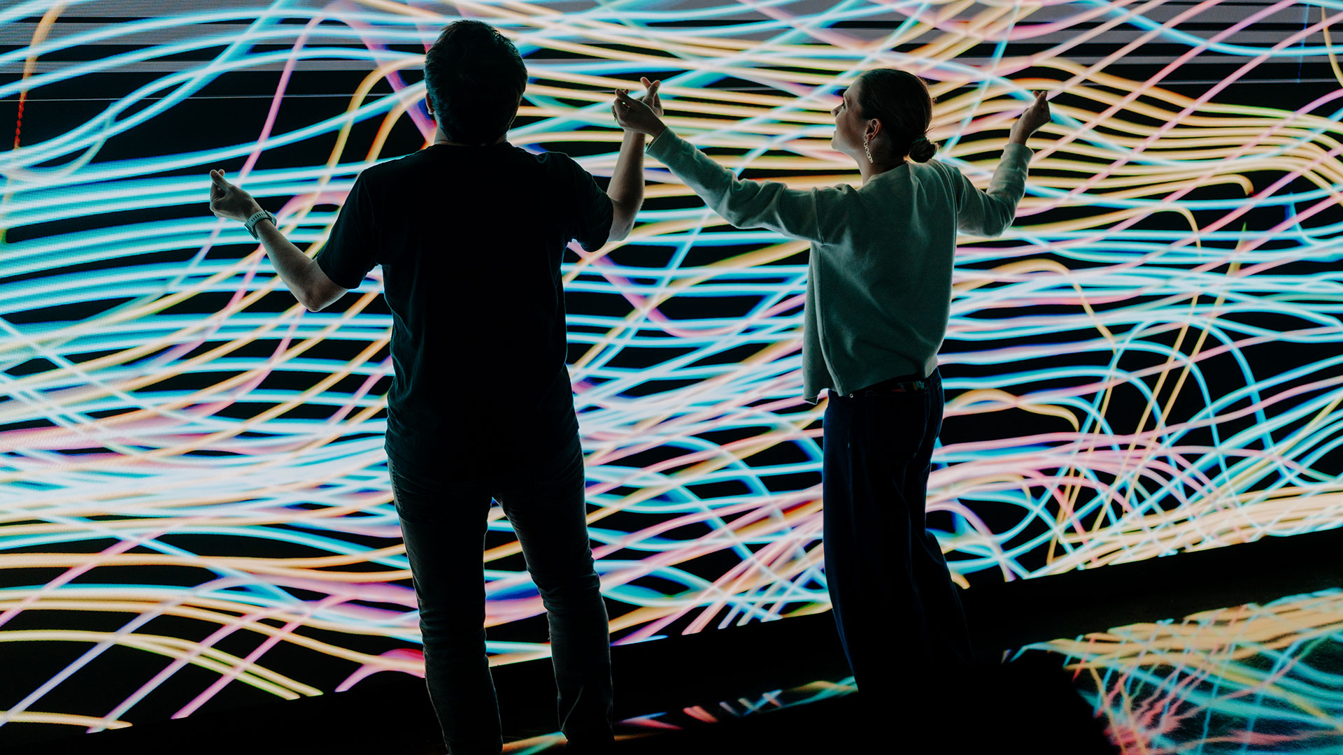 Αυτό ακριβώς έκανα κι εγώ. Οι σένσορες άρχισαν να καταγράφουν τον καρδιακό μου παλμό και στη συνέχεια, χάρη στις οδηγίες που έχει δώσει στην τεχνητή νοημοσύνη η Κιμ, να τον οπτικοποιούν σε γεωμετρικούς σχηματισμούς από νέον γραμμές, οι οποίοι προβάλλονταν στους καλυμμένους με LED οθόνες τοίχους. Ο παιγνιώδης, ευρηματικός χαρακτήρας της εμπειρίας μού φάνηκε έξυπνος, αν και δεν μπορώ να πω ότι με συγκίνησε το έργο που έφτιαξαν οι χτύποι της καρδιάς μου ή ότι με έτερψε ιδιαιτέρως, σε αισθητικό επίπεδο.