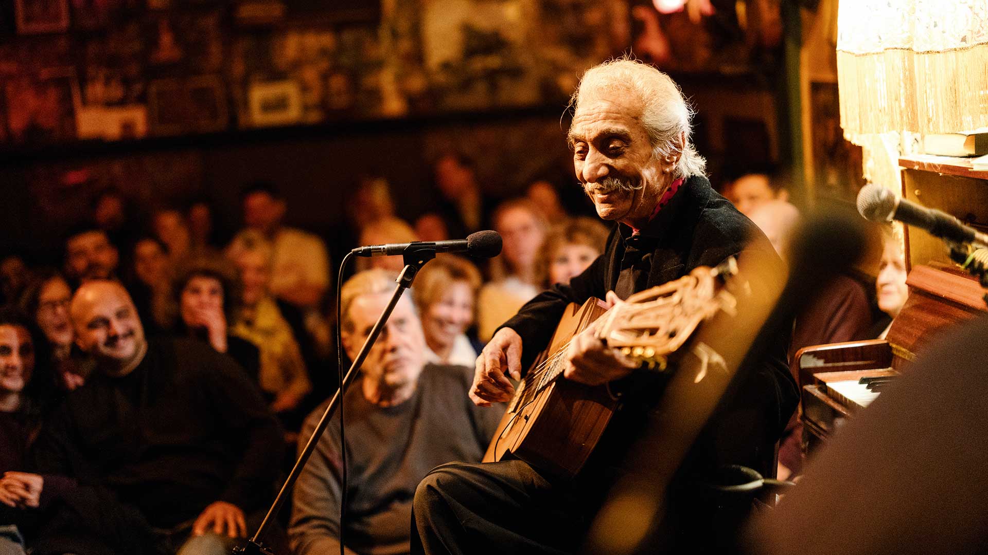 Όση ώρα μιλάμε, δεν πίνει ούτε τσάι, ούτε νερό, ούτε τίποτα. «Σε λίγα λεπτά βγαίνετε», του κάνω. «Έχετε κέφι;» Ενοχλείται κάπως. «Τι ερώτηση είναι αυτή; Ναι, με συγκινεί ακόμα να τραγουδάω. Γιατί έχω εικόνες. Πάρα πολλές. Τραγουδάω και βλέπω εικόνες». Κάπου εδώ τελειώνουμε και του ζητάμε να ποζάρει για κάποιες φωτογραφίες. Δεν είναι το καλύτερό του. Ύστερα μου ξανασφίγγει το χέρι. «Να πάμε για καφέ». Επάνω ο κόσμος βρίσκεται ήδη στις θέσεις του, τσουγκρίζει ποτήρια. Γύρω στις εννιάμισι, μετά από μια ολιγόλεπτη εισαγωγή πιάνου, ο Χατζής παίρνει θέση στην καρέκλα, μόνος με την κιθάρα. Ακουμπάει το πέλμα στο υποπόδιο, λέει ένα αστειάκι και ξεκινάει. Πρώτο κομμάτι, Όταν είμαι μόνος. Τα μεγάλα του δάχτυλα επιτίθενται στις χορδές. Η φωνή του βαθιά, τραχιά και γλυκιά μαζί, παξιμάδι με μέλι. «Τραγουδάω για τα ανθρώπινα δικαιώματα και τα ανθρώπινα καθήκοντα, καταγγέλλοντας την πολιτεία με σεβασμό». Σε κάποια σημεία δυσκολεύεται να πιάσει τις νότες. Αναμενόμενο για άνθρωπο της ηλικίας του. Άλλωστε ο κόσμος δεν έψαξε ποτέ στη φωνή του Χατζή έναν τεχνικά άρτιο τραγουδιστή, αλλά τη βραχνάδα που ξεκινάει από τα θεμέλια της γης για να εκφράσει την «αγωνία αυτού του τόπου για ζωή». (Ο Σαββόπουλος έχει αναφέρει ότι στα πρώτα του χρόνια, αισθανόμενος την ανεπάρκεια της φωνής του, προσπαθούσε να τον μιμηθεί.) Ακόμα και τα λάθη του στην κιθάρα απόψε, οι αρρυθμίες, ο στίχος που ξεχνάει, είναι κομμάτια του ρευστού gypsy style που τον καθιέρωσε και εξακολουθεί να τον εξυψώνει πάνω από κάθε τι τέλειο και βαρετό.