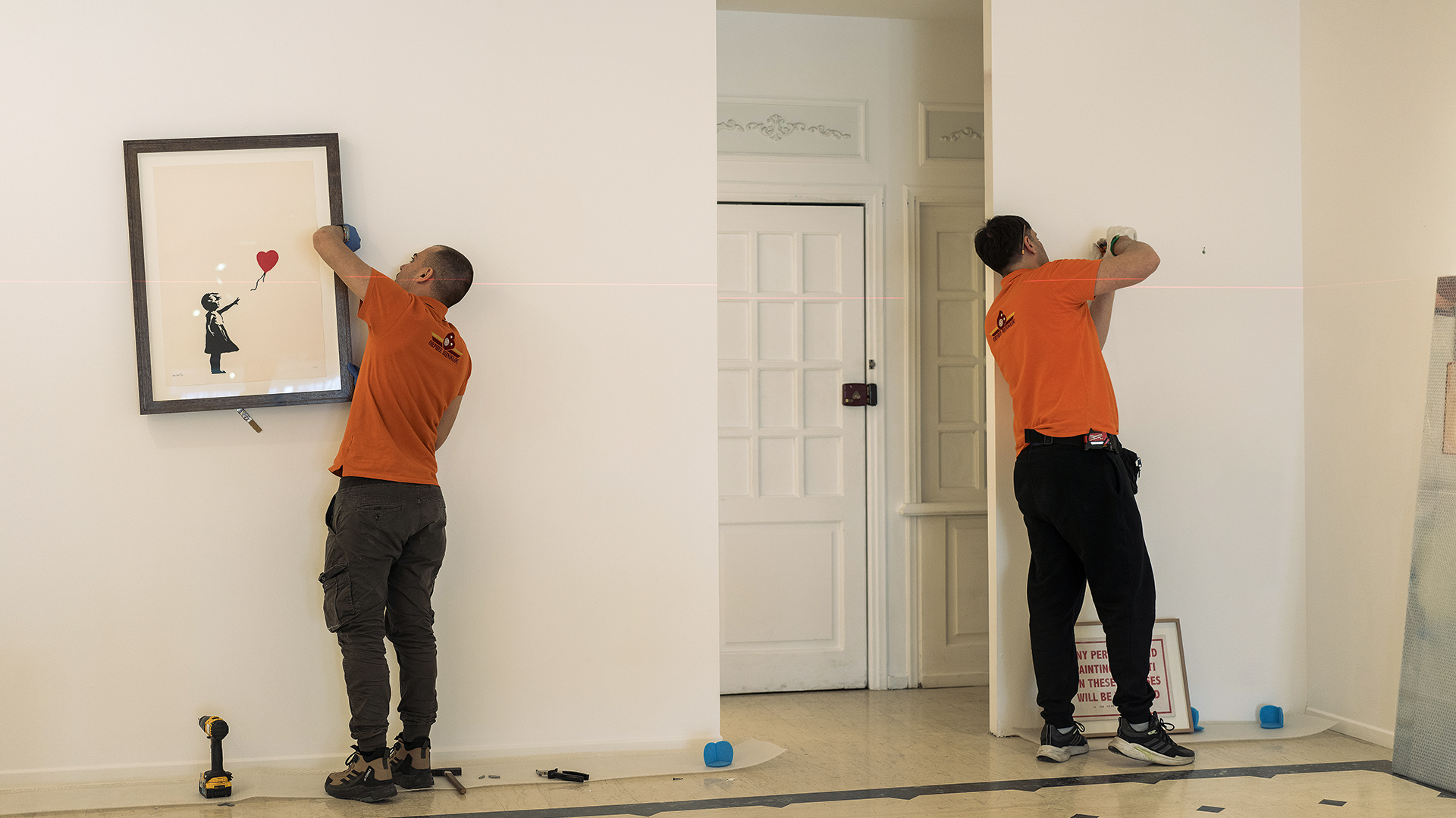 «Καλλιτεχνικά λειτουργεί, εμπορικά όμως όχι. Μήπως να δοκιμάσουμε κάποια άλλη σύνθεση;» ακούω κάποια στιγμή να λέει ο Άκορις Αντύπα, κοιτώντας δύο έργα του Γουόρχολ, τοποθετημένα μπροστά από έναν λευκό τοίχο. Το ένα είναι μια πολύχρωμη Σιβηριανή τίγρη από τη σειρά Απειλούμενα είδη του 1983 και το άλλο ένα Σήμα δολαρίου (1982) σε μπλε και κόκκινους τόνους. Η ομάδα αλλάζει θέσεις στα έργα επιτόπου. Προσεκτικά και σταθερά, φορώντας πάντα γάντια, δοκιμάζουν διάφορα σημεία στον χώρο προκειμένου να δομηθεί η απαραίτητη αφήγηση. Πικάσο, Γουόρχολ, Μπάνκσι, Ματίς, Μπέικον, Χάρινγκ και Χιρστ περιμένουν υπομονετικά στο πάτωμα μέχρι να έρθει η σειρά τους.