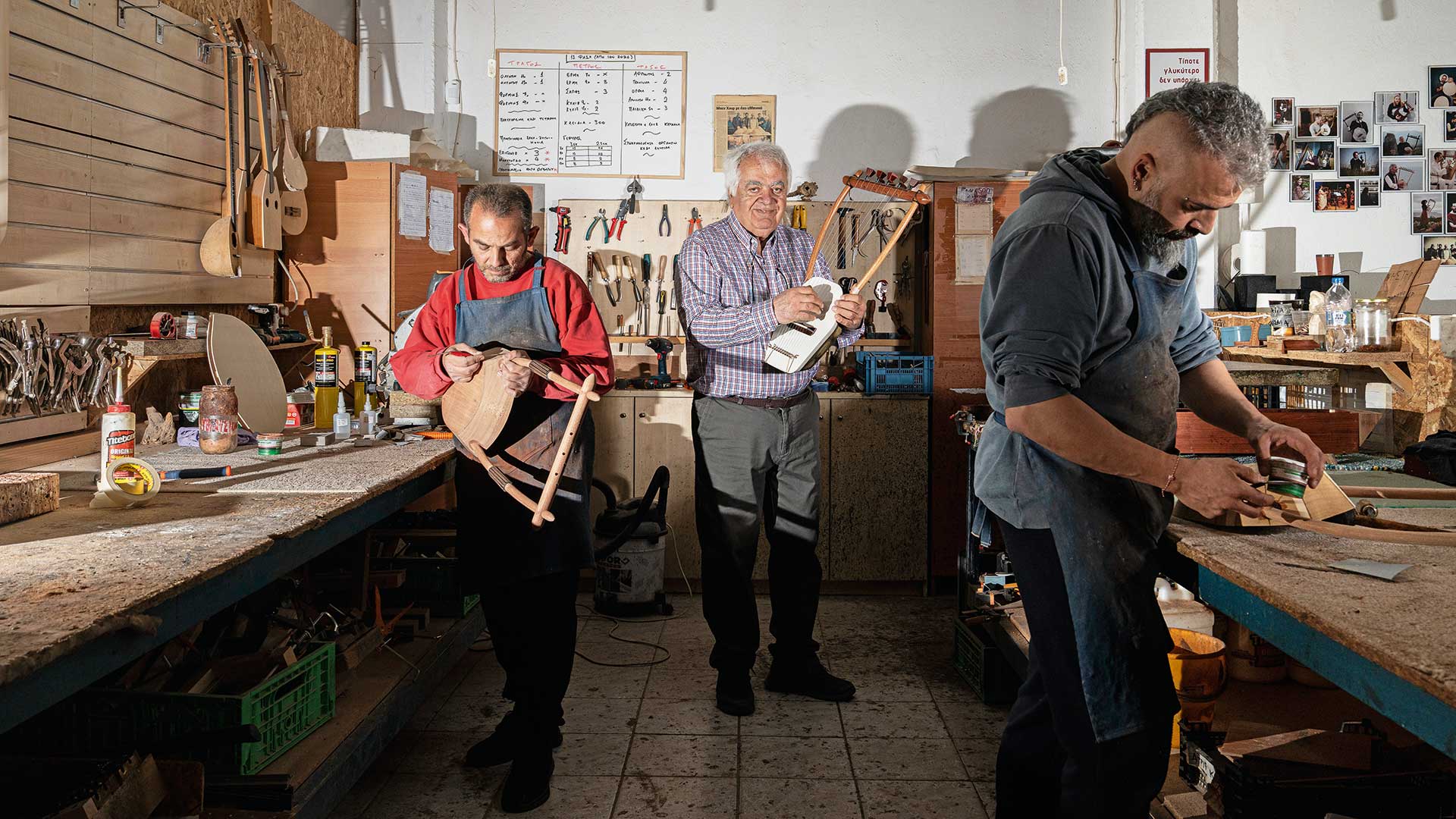«Η αρχαία λύρα αποτελεί μια οικογένεια μουσικών οργάνων», λέει ο Θοδωρής και περιγράφει: «Για παράδειγμα, η χέλυς, η λύρα του Ερμή, με καύκαλο, δέρμα και ξύλινους βραχίονες, μπορεί να χρειαστεί δύο-τρεις εβδομάδες για να κατασκευαστεί. Άλλα όργανα, όπως η αρχαία ελληνική κιθάρα, είναι πολύ πιο σύνθετα και μπορεί να χρειαστούν έως και ενάμιση μήνα. Παίζουν ρόλο και οι περιβαλλοντικές συνθήκες: υγρασία, βροχή. Ένα κομμάτι ξύλο, όπως η μουριά, μπορεί να χρειαστεί μήνες για να στεγνώσει. Δοκιμάζουμε και κουρδίζουμε όλα τα όργανα, για να είμαστε σίγουροι ότι είναι έτοιμα να ταξιδέψουν».