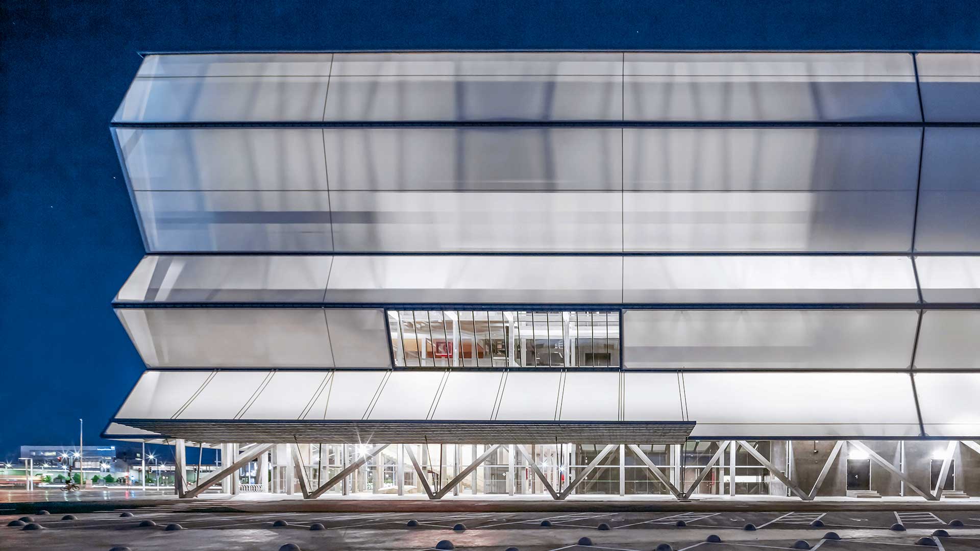 Teatro Regional del Biobío (Κονσεπσιόν, Χιλή, 2018) Βρίσκεται κατά μήκος του ποταμού Μπιόμπιο. Το κοκκινωπό πολυανθρακικό περίβλημα του κτιρίου το κάνει να λάμπει τη νύχτα σαν φανάρι.