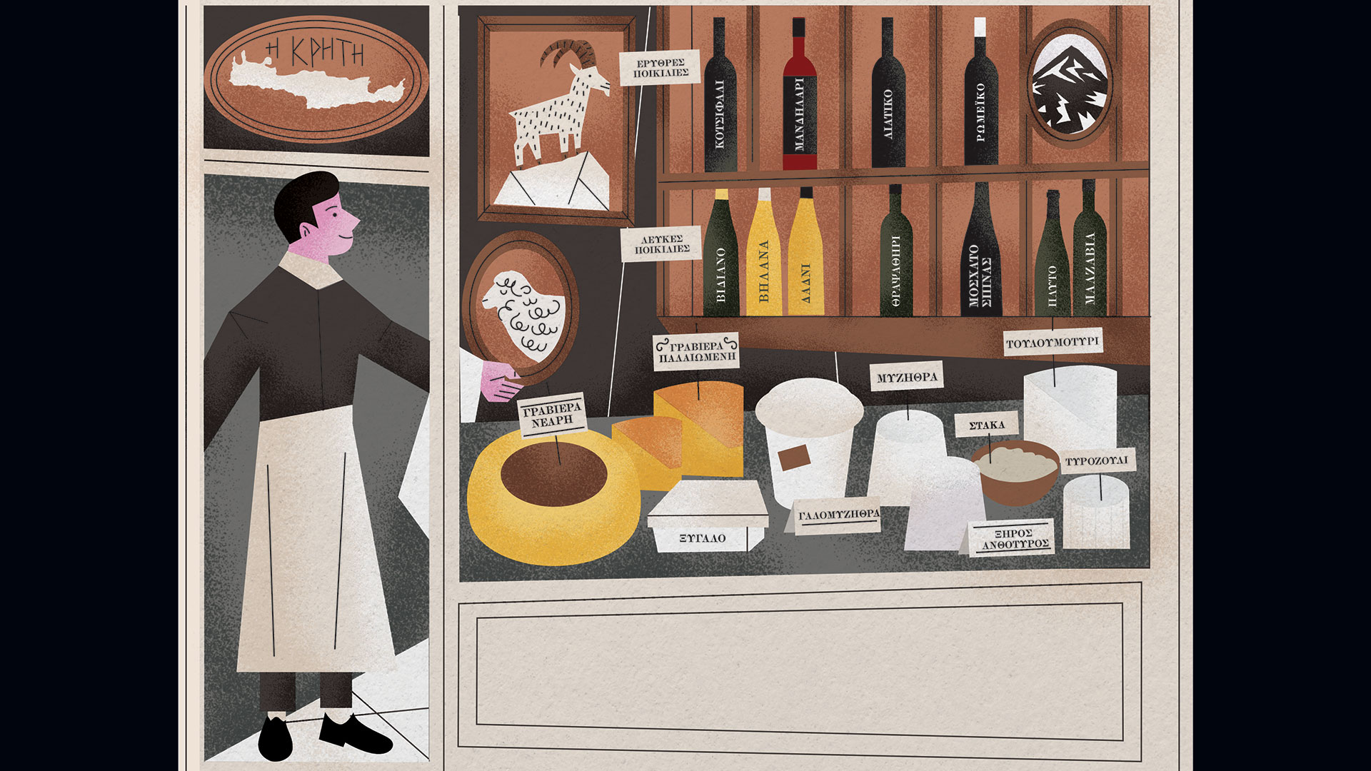 Στα αγγλικά θα λέγαμε «what grows together, goes together» – δηλαδή, προϊόντα που έχουν μεγαλώσει στον ίδιο τόπο ταιριάζουν μεταξύ τους. Και για το terroir της Κρήτης αυτό ισχύει ως γενικός κανόνας. Αυτό που πάει με όλα είναι η γλυκιά, νεαρή λιπαρή γραβιέρα από πλούσιο γάλα, που πολλές φορές βγάζει έναν ξηροκαρπάτο χαρακτήρα. Ταιριάζει σαφώς με την κορυφαία γηγενή ποικιλία, το Βιδιανό, αλλά και με τα περισσότερα κρασιά του νησιού – από αρωματικά λευκά δεξαμενής (π.χ. Μοσχάτο Σπίνας και Βηλάνα) μέχρι ένα ωραίο κόκκινο σε χαρμάνι ή single vineyard. Τα πιο παλαιωμένα τυριά τους, μια γραβιέρα 12 μηνών και παραπάνω, πηγαίνουν ωραία με τα βαρελάτα ερυθρά, με το διάσημο κρητικό blend Κοτσιφάλι-Syrah, ακόμα και με ένα 100% Μανδηλάρι.