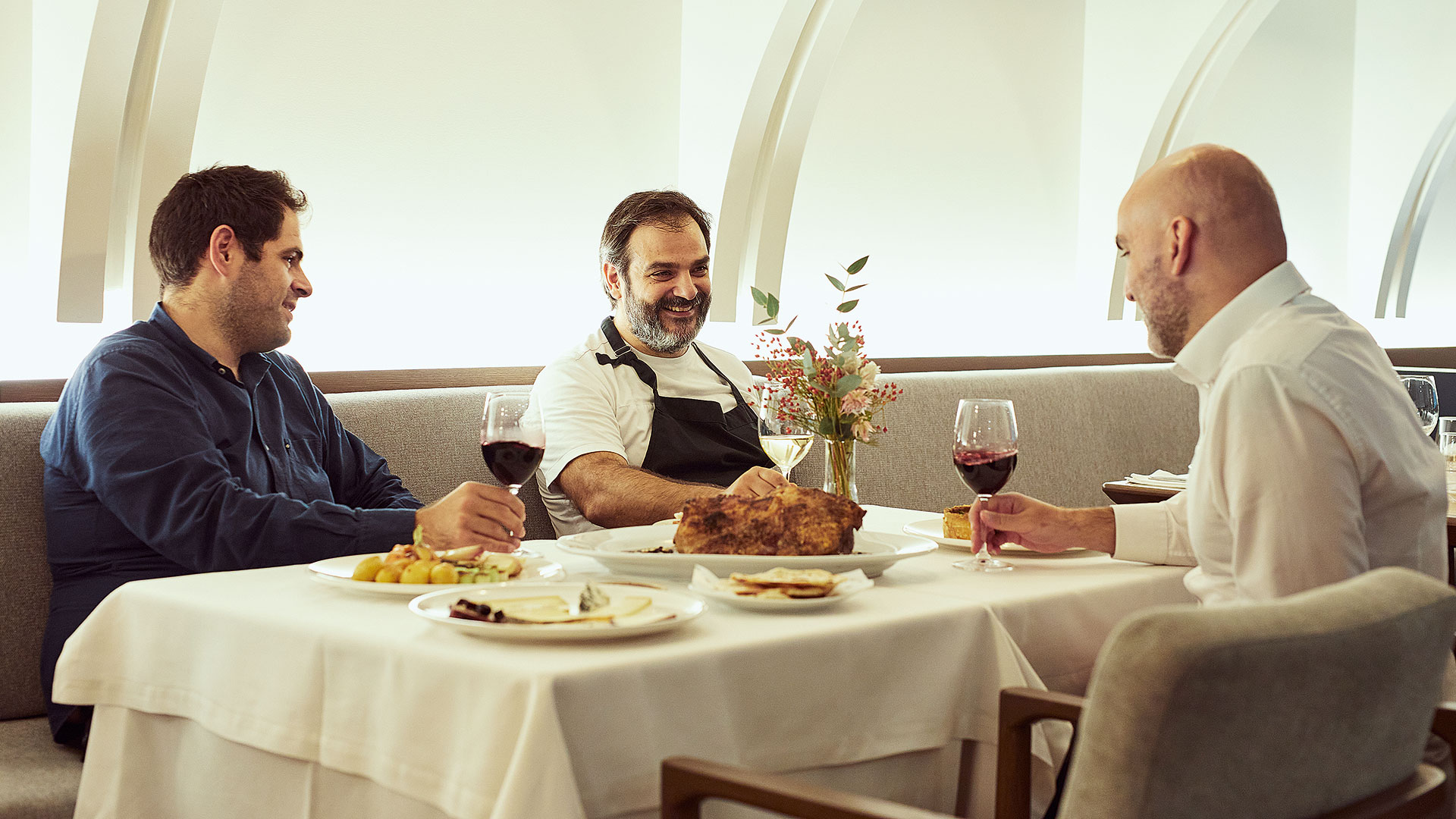 Δύο σομελιέ και ένας σεφ, καθισμένοι γύρω από ένα τραπέζι, ρίχνουν ιδέες για τα φαγητά και τα κρασιά του γιορτινού τραπεζιού. Ο Ελευθέριος Χανιαλίδης MS και ο Άρης Σκλαβενίτης περνούν μερικές ώρες μαζί με τον chef patron του εστιατορίου Cookoovaya, Περικλή Κοσκινά, και ετοιμάζουν ένα μενού εμπνευσμένο από διεθνείς συνταγές. Κρυφακούσαμε την κουβέντα τους σχετικά με τις υφές και τα αρώματα: Ποιο αγκαλιάζει, ποιο κοντράρει, πώς αλληλεπιδρούν οι τανίνες και η οξύτητα με το κυρίως πιάτο; Οι φωτιές στην κουζίνα ανάβουν, το κρέας αρχίζει να μοσχοβολάει, τα τυριά τοποθετούνται στην πιατέλα. Μετά από μερικές ώρες μαγειρικής και αρκετό ψάξιμο στα ράφια της κάβας, μας παραδίδουν ένα συνεκτικό και απολαυστικό μενού με επιλεγμένες ετικέτες από τον γαλλικό και τον ισπανικό αμπελώνα, που θα κάνει αυτή την Πρωτοχρονιά αξέχαστη.