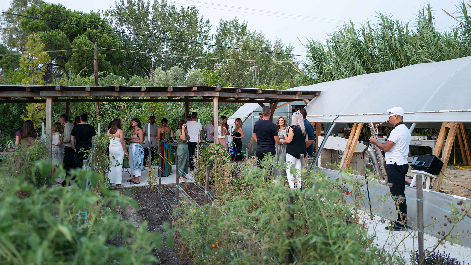 Η διαδρομή ξεκινάει από το βιολογικό μποστάνι του ξενοδοχείου, το οποίο τροφοδοτεί την κουζίνα με φρέσκα λαχανικά. Εκεί, ανάμεσα στις ντοματιές και στις κολοκυθιές, ακούγοντας τον κηπουρό Γιάννη Κανταρτζή να εξηγεί πώς διατηρεί ένα ολοκληρωμένο σύστημα διαχείρισης του αγρού, οι συμμετέχοντες θα δοκιμάσουν την ετικέτα «MAΙΝΑΔΑ ερυθρωπό». Πρόκειται για ένα ροζέ κρασί, φτιαγμένο 100% από Φωκιανό, χωρίς επεξεργασία και αφιλτράριστο, που καλλιεργείται σε πεζούλες με μικρή στρεμματική απόδοση. Διακρίνεται για τα αρώματα βοτάνων που σε «τηλεμεταφέρουν» στο άγριο τοπίο του νησιού. Στα μακρόστενα ξύλινα τραπέζια στο κιόσκι, δίπλα στις καλλιέργειες, θα τους περιμένουν πιατέλες με ωμά λαχανικά από το μποστάνι, ελιές και ελαιόλαδο Χαλκιδικής, προζυμένιο ψωμί και «Πετρωτό» τυρί Σταθώρη, ένα κατσικίσιο τυρί άλμης από την ορεινή Χαλκιδική.