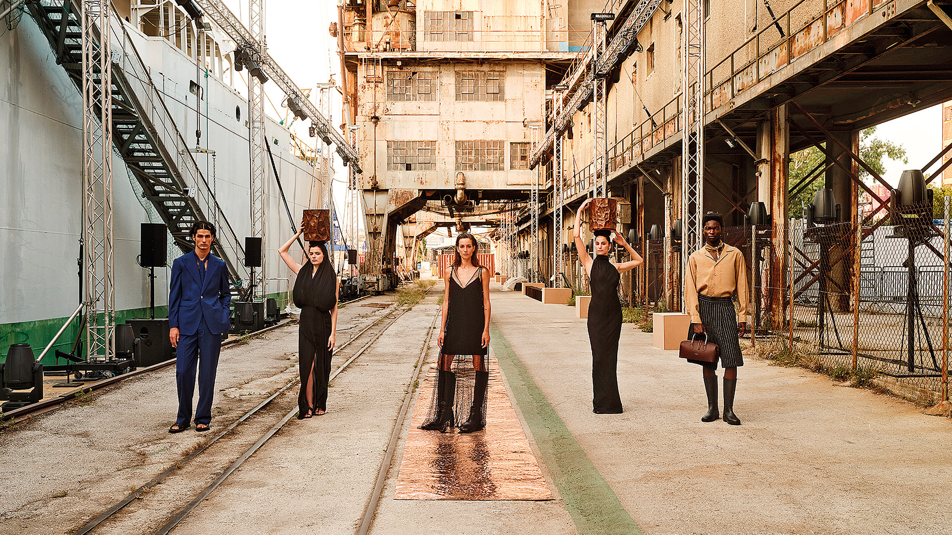 Σε ποια «γλώσσα» μπορεί να μιλήσει ένα ανεξάρτητο ελληνικό brand στη διεθνή βιομηχανία της μόδας του σήμερα; Στην προβλήτα Σιλό, το σάουντρακ της βραδιάς είχε έναν αέρα μετα-νοσταλγικό: ήχους ρεμπέτικου, λατέρνας, θάλασσας, γλάρων και καμπαναριών. Όσο για τη συλλογή, ήταν μια κολεξιόν-ύμνος στα «διά χειρός» επαγγέλματα, στις γυναίκες και στους άνδρες τεχνίτες που κρατούν –ακόμα– ζωντανές τις χειροποίητες παραδόσεις μας. Αυτό άλλωστε μου είχε μεταφέρει, παραμονές του σόου, και ο καλλιτεχνικός διευθυντής της Zeus+Δione, Μάριος Σουάμπ (Schwab), όταν βρεθήκαμε στο νεοκλασικό κτίριο της εταιρείας στου Ψυρρή, για να μου περιγράψει τις πηγές της έμπνευσής του. «Ο ήχος ενός σφυριού πάνω στο μέταλλο είναι η καρδιά του τεχνίτη», μου είπε μιλώντας για τους μαέστρους κάθε χειροποίητης παράδοσης, αλλά και τις στολές τους, ραμμένα ρούχα, όπως ένα σακάκι κι ένα παντελόνι.