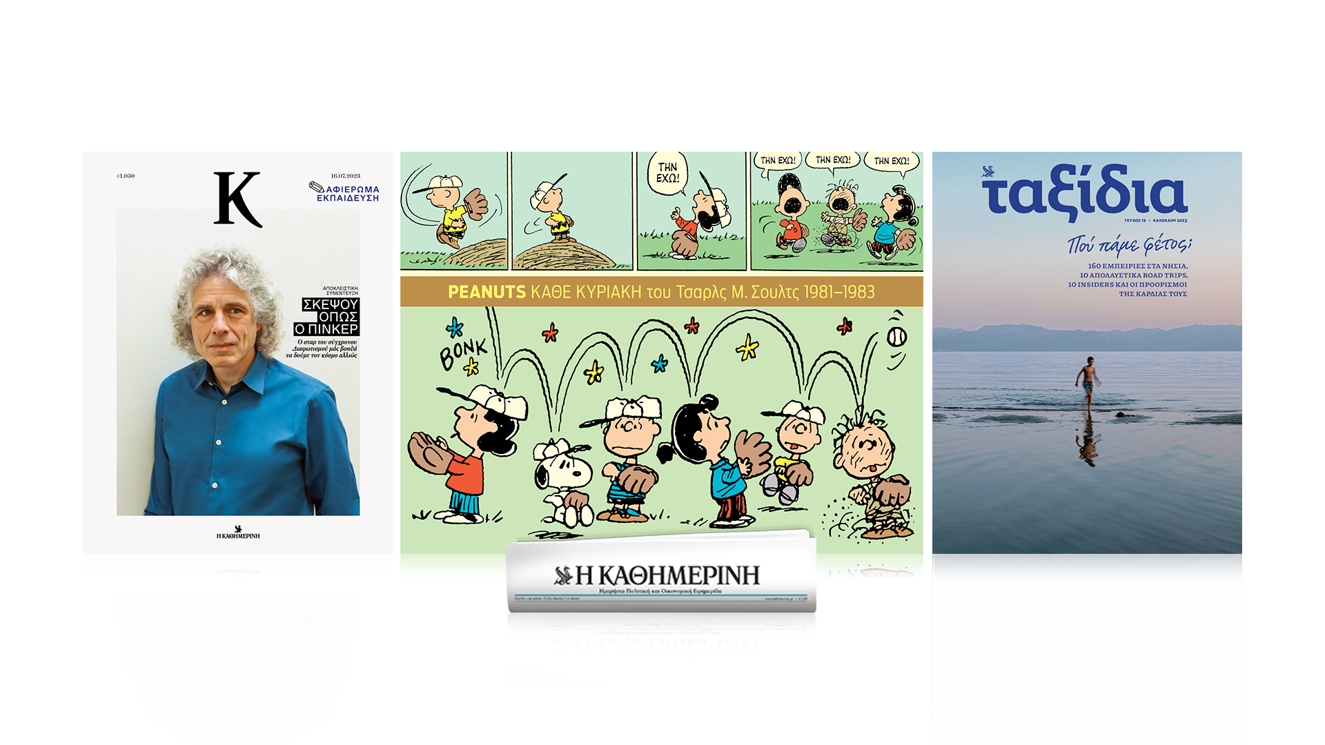 Μπορείς να πνιγείς σε μία θάλασσα από ερωτήματα και τελικά υπάρχει τρόπος να πατσίσεις με τον ωκεανό; Ο Σνούπυ και η παρέα των Peanuts επέστρεψαν, ενώ τα «Ταξίδια» Ιουλίου απαντούν στο ερώτημα «Πού θα πάμε φέτος διακοπές;» με 10 προτάσεις για road trips, 160 μυστικά για εξορμήσεις στα νησιά και 10 προορισμούς καρδιάς. Ακόμα ο Στίβεν Πίνκερ, o κορυφαίος στοχαστής και καθηγητής ψυχολογίας στο Χάρβαρντ, μιλάει αποκλειστικά στο «Κ», στην πρώτη του συνέντευξη σε ελληνικό μέσο, και εξηγεί γιατί ο κόσμος γίνεται καλύτερος και γιατί δεν φοβάται την τεχνητή νοημοσύνη.
