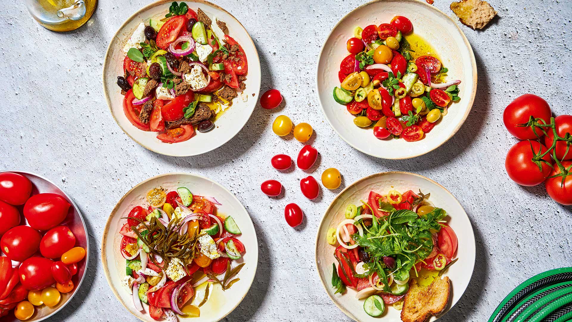 «Στο τέλος του καλοκαιριού με αρχές φθινοπώρου, βρίσκω τις ωραιότερες και πιο γλυκές ντομάτες» μου έλεγε ένας γνωστός μου. Εγώ βέβαια είχα βρει καταπληκτικές ντομάτες και τον Μάιο. Προφανώς εξαρτάται από τον καιρό, το μικροκλίμα της κάθε περιοχής, τον τρόπο καλλιέργειας (υπαίθριες ή θερμοκηπίου), τις φροντίδες του εκάστοτε παραγωγού και επίσης την ποικιλία ή το υβρίδιο. Αλλάζουν οι εποχές, αλλάζει το κλίμα, αλλάζει κι η ποιότητα των καρπών. Έχετε φτιάξει ποτέ χωριάτικη με αληθινή ντομάτα από αληθινό σπόρο; Δεν έχει καμία σχέση με τα υβρίδια. Η γεύση της είναι αυθεντικά νόστιμη, κρίσιμη, καθοριστική. Πολλές φορές την προδίδει η εμφάνισή της: συχνά είναι ατσούμπαλη, ακατάστατη, στραβοχυμένη και μπαταρισμένη, σχετικά μαλακιά. Καμιά δεν είναι όμοια με την άλλη κι επίσης μια τέτοια ντομάτα μυρίζει δυνατά, είναι συνήθως φθηνότερη, τη βρίσκουμε εξορισμένη στους πίσω πίσω πάγκους του μανάβικου ή σε εκείνους που τους τρώει ο ήλιος στην άκρη του μαγαζιού, και κάποιοι τους βάζουν και το αυθαίρετο ταμπελάκι που γράφει «ντομάτες για σάλτσα» και υποβιβάζει αυτομάτως και την αξία τους. Βέβαια δεν είναι μόνο η ντομάτα που πρέπει να είναι πρώτης διαλογής. Το ελαιόλαδο θα πρέπει όχι απλώς να είναι κορυφαίο αλλά να είναι η αφρόκρεμα, η φέτα να είναι σπάταλη, διαλεχτή κι επώνυμη, το κρεμμύδι ελαφρώς καυτερό και τριζάτο, η πιπεριά να μοσχοβολάει τόσο που να τη μυρίζεις από μακριά, το αγγούρι να κάνει κρατς στο δάγκωμα, και οι ελιές να είναι σαρκώδεις και υπόπικρες. Αντίστοιχα κριτήρια ποιότητας θα πρέπει να πληρούν και τα υπόλοιπα συστατικά της χωριάτικης. Τελευταίο, αλλά πολύ σημαντικό, το ψωμί για το λαδομπούκι (κοινώς παπάρα). Εκεί θα πρέπει να δοθεί μεγάλη σημασία, και η επιλογή του να γίνει με γνώση και συνείδηση. Τα επικά ζουμιά της χωριάτικης τρώγονται μέχρι την τελευταία σταγόνα με έναν και μοναδικό τρόπο: χρησιμοποιώντας μικρές, στιβαρές μπουκιές ψωμιού. Αμαρτία ασυγχώρητη να πεταχτούν οι χυμοί της χωριάτικης σαλάτας – αν περισσέψουν τους φυλάω στο ψυγείο και τους προσθέτω στη σαλάτα της επόμενης μέρας ή σε κάποια σάλτσα.