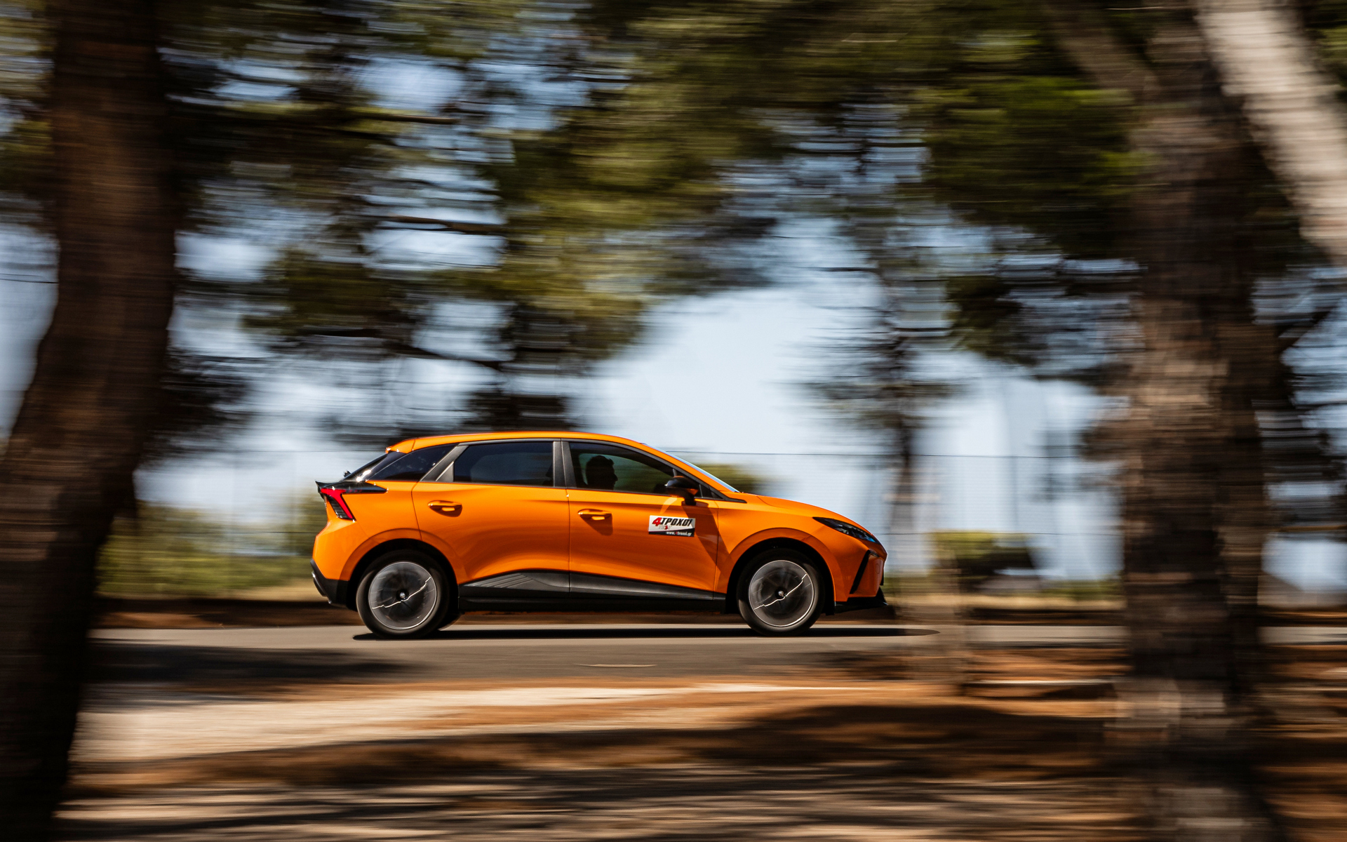 Αυτό το χάτσμπακ με τη σφηνοειδή μάσκα και το μοναδικό του προφίλ δεν περνάει απαρατήρητο. Αναμφίβολα το πορτοκαλί χρώμα του λανσαρίσματος το κάνει να ξεχωρίζει ακόμα περισσότερο, αλλά του δίνει συνάμα μια αναγνωρισιμότητα, σε συνδυασμό με τη δουλειά που έχει γίνει ήδη από τον όμιλο Συγγελίδη για το επαναλανσάρισμα της MG στη χώρα μας. Πραγματικά μας έκανε εντύπωση πόσο ενημερωμένος ήταν ήδη ο κόσμος που έσπευδε να το περιεργαστεί, οπουδήποτε σταθμεύαμε. Στο ίδιο αυτό πορτοκαλί είχαμε οδηγήσει το MG4 για πρώτη φορά πέρυσι στη Δανία, στο πλαίσιο της προκριματικής διαδικασίας του Αυτοκινήτου της Χρονιάς, και είχαμε πραγματικά εντυπωσιαστεί.