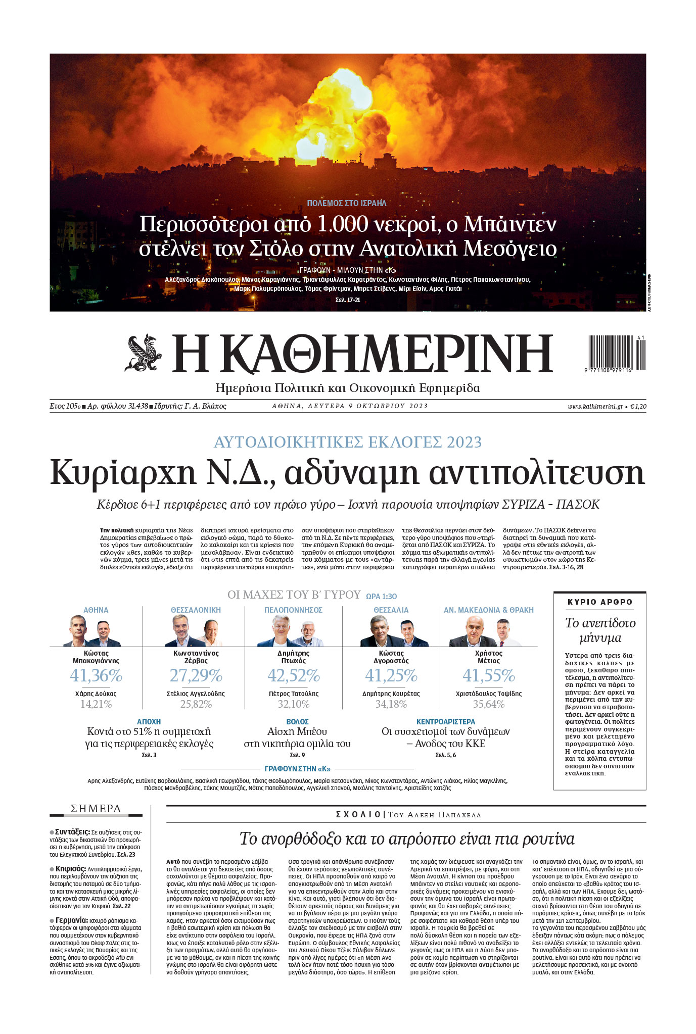 Με ένα έκτακτο φύλλο 28 σελίδων η «Κ» σήμερα καταγράφει τα αποτελέσματα και τον απόηχο των αυτοδιοικητικών εκλογών.