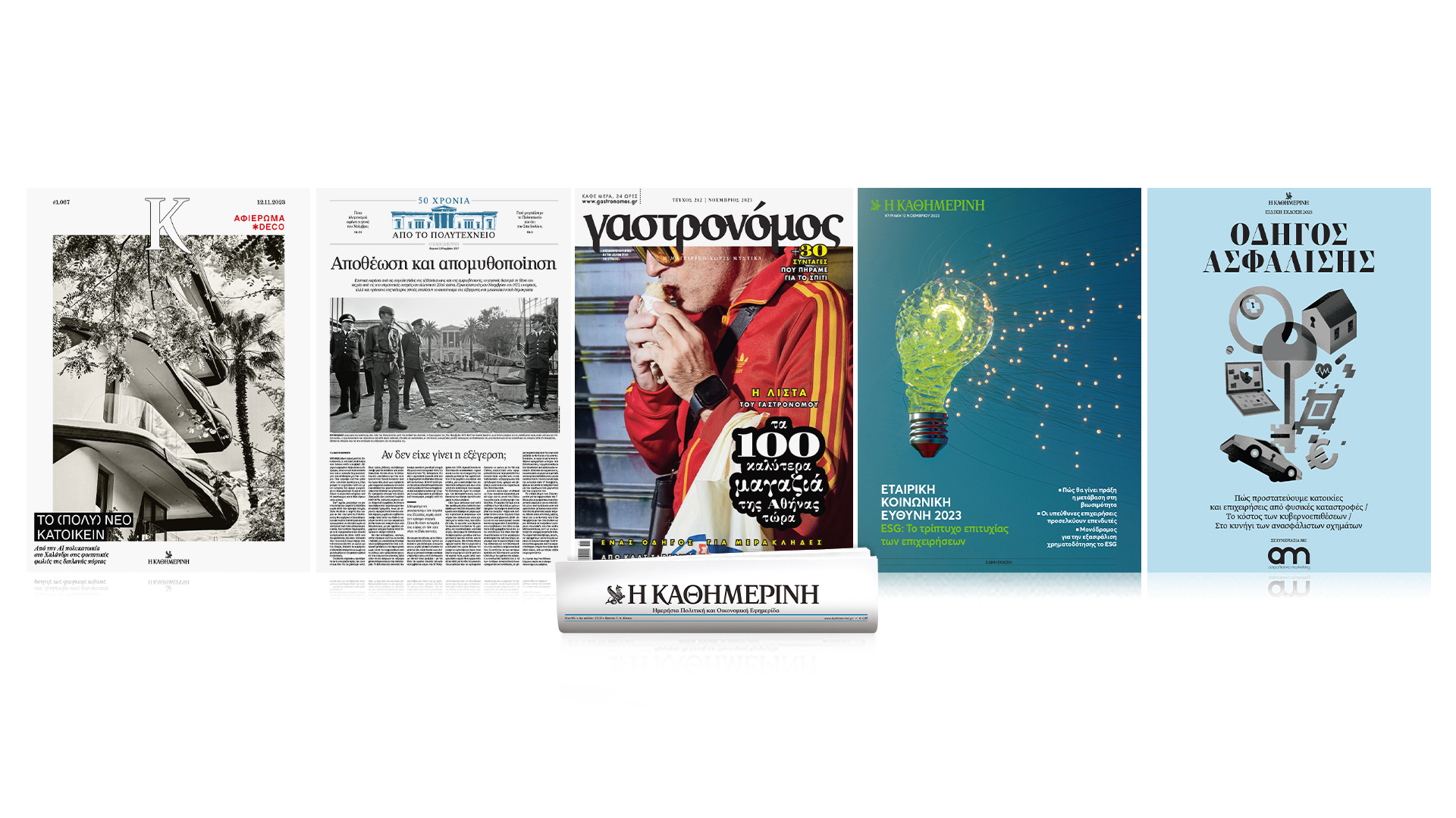 Πού τρώει ο Γαστρονόμος; Από καλτ ταβέρνες μέχρι κυριλέ εστιατόρια και από τυροπιτάδικα μέχρι μοντέρνους φούρνους, αυτά είναι τα 100 μαγαζιά που αγαπάμε στην Αθήνα τώρα. Μαζί «Εταιρική Κοινωνική Ευθύνη 2023», η ειδική εξαμηνιαία έκδοση αφιερωμένη στο ESG, το τρίπτυχο επιτυχίας των επιχειρήσεων και η ειδική έκδοση «Οδηγός Ασφάλισης», που χαρτογραφεί τις προκλήσεις που φέρνει το μέλλον, φυσικές καταστροφές, κυβερνοεπιθέσεις, ανασφάλιστα οχήματα κ.ά.