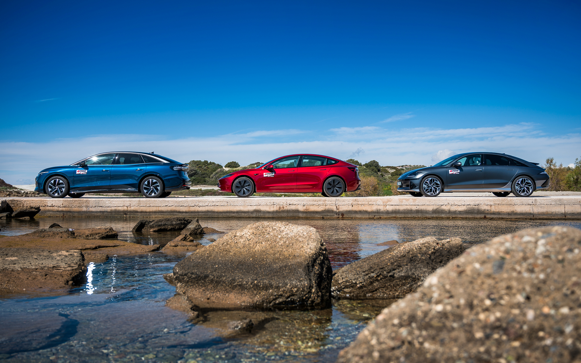 Οι σεντάν κούρσες του παρελθόντος έχουν μετουσιωθεί στη σημερινή ηλεκτρική πραγματικότητα σε μεγάλα οχήματα, των οποίων η ρευστή σιλουέτα καθορίζεται από την αεροδυναμική και το ντιζάιν. Τελευταίος υποστηρικτής αυτής της τάσης είναι το νεοφερμένο VW ID.7, που συναντάει το «διαστημικό» Hyundai Ioniq 6 και τον αρχηγό αυτής της ηλεκτρικής κατηγορίας, το ανανεωμένο Tesla Model 3.