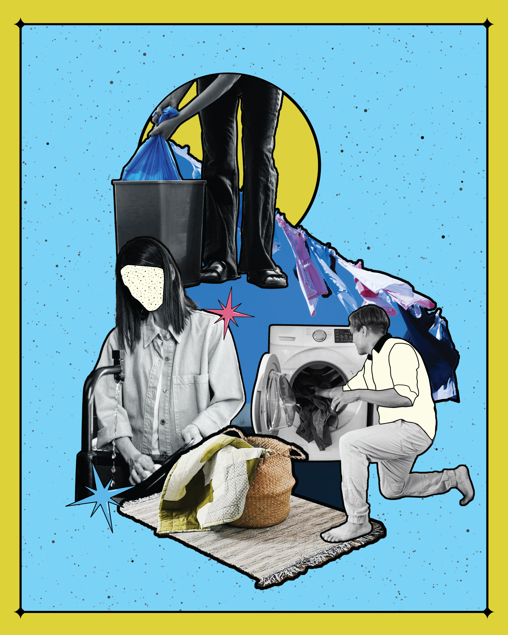 Η σαραντάχρονη Ελένη και ο σαραντατριάχρονος Κυριάκος συγκατοικούν εδώ και περίπου δύο χρόνια στο κέντρο της Αθήνας. Δουλεύουν και οι δύο σε διαφημιστικές εταιρείες, από το πρωί έως αργά το απόγευμα τις καθημερινές. Το Σαββατοκύριακο, η Ελένη χρειάζεται συνήθως να εργαστεί αρκετές επιπλέον ώρες στο λάπτοπ της, ενώ ο Κυριάκος είναι πιο χαλαρός, αν και σπανιότερα μπορεί να λείψει εκτός Αθηνών σε κάποιο γύρισμα. Όταν τους ρωτάω πώς μοιράζουν τις δουλειές του σπιτιού, παίρνει τον λόγο πρώτος εκείνος. «Αν θέλω να είμαι δίκαιος, θα έλεγα ότι εγώ κάνω το 45% και η Ελένη το 55%», λέει. Καθισμένη δίπλα του, η σύντροφός του δεν φαίνεται να συμφωνεί. Κουνάει το κεφάλι της αρνητικά και σχολιάζει πως, κατά τη γνώμη της, εκείνη έχει στους ώμους της μεγαλύτερο μερίδιο εργασιών. Ο Κυριάκος αντιδρά με ειλικρινή απορία: «Μα γιατί, δεν κάνω ό,τι μου ζητήσεις;» διαμαρτύρεται. «Εκεί είναι το πρόβλημα…» έρχεται η απάντηση.