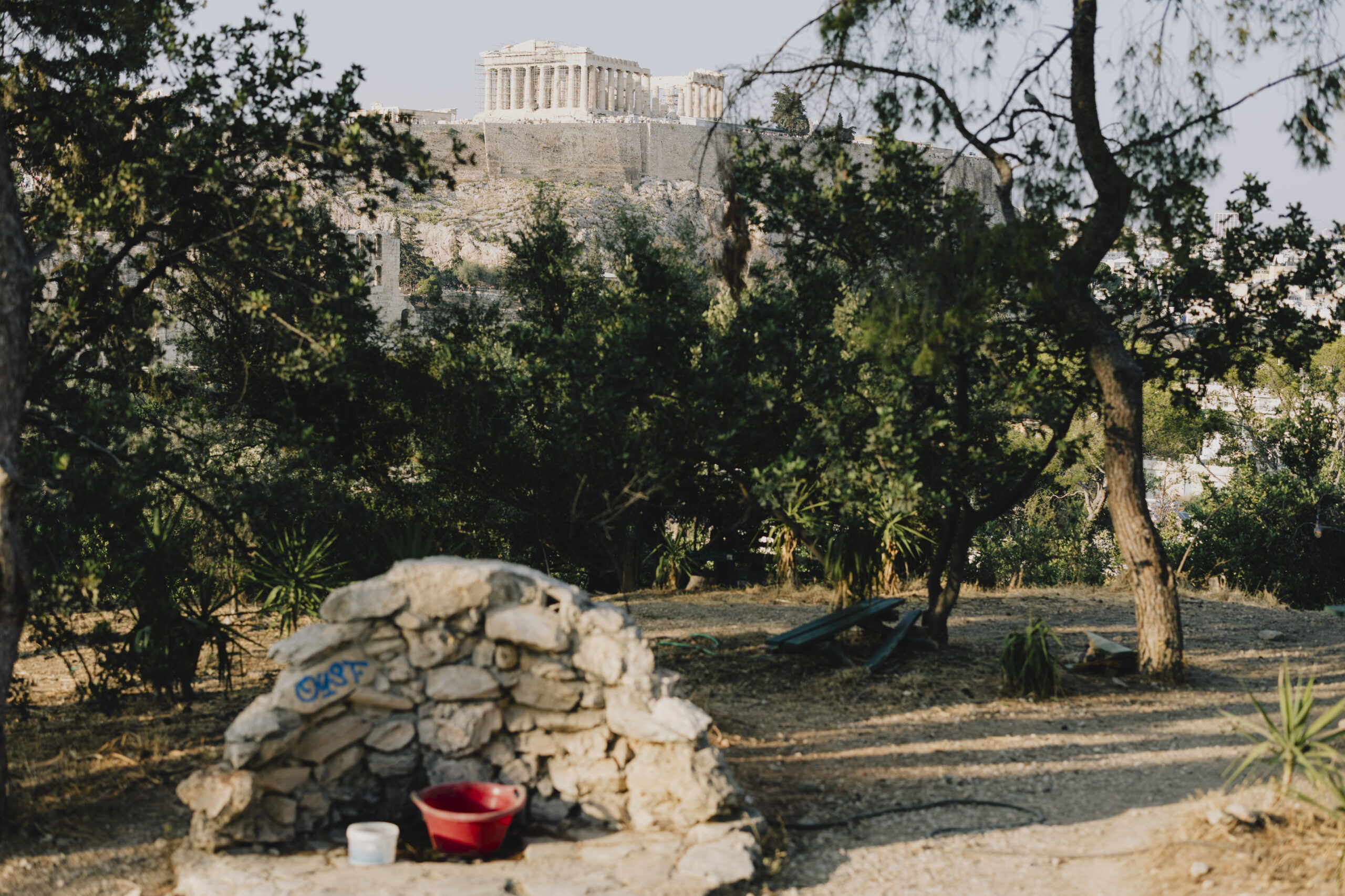 Γύρω μας η Αθήνα δεν σταματά να τρέχει, εδώ όμως, στον πρώτο από τους τρεις λόφους που αποτελούν το σύμπλεγμα του Φιλοπάππου (Νυμφών και Πνύκα οι άλλοι δύο), η καθημερινότητα έχει τους δικούς τους ρυθμούς. Σε μια έκταση περίπου 700 στρεμμάτων, συγκεντρώνεται το παρελθόν και το παρόν της πόλης, μπλεγμένο αρμονικά και ανεπιτήδευτα. Εδώ άλλωστε συνυπάρχουν όλες φυλές της πόλης: Αθηναίοι και ψηφιακοί νομάδες, τουρίστες και αθλητές, φιλόζωοι και μοναχικές ψυχές. «Είναι η ηρεμία που μας αρέσει εδώ. Οι άλλοι λόφοι είναι πιο πυκνοκατοικημένοι, ο Φιλοπάππου είναι προσβάσιμος, εύκολος να τον περπατήσεις και έχει ελεύθερη είσοδο», λένε η Μία και η Αντρέα, πριν επιστρέψουν στην παρτίδα τους. Για άλλους όπως ο Τζέιμς, Βρετανός κάτοικος Αθηνών εδώ και οκτώ μήνες, ο λόφος έχει και μια πνευματική διάσταση. «Το να βλέπω εδώ το ηλιοβασίλεμα, με την ησυχία αυτή που του αρμόζει, με κάνει να σκέφτομαι πώς ο θεός δημιούργησε τον κόσμο».