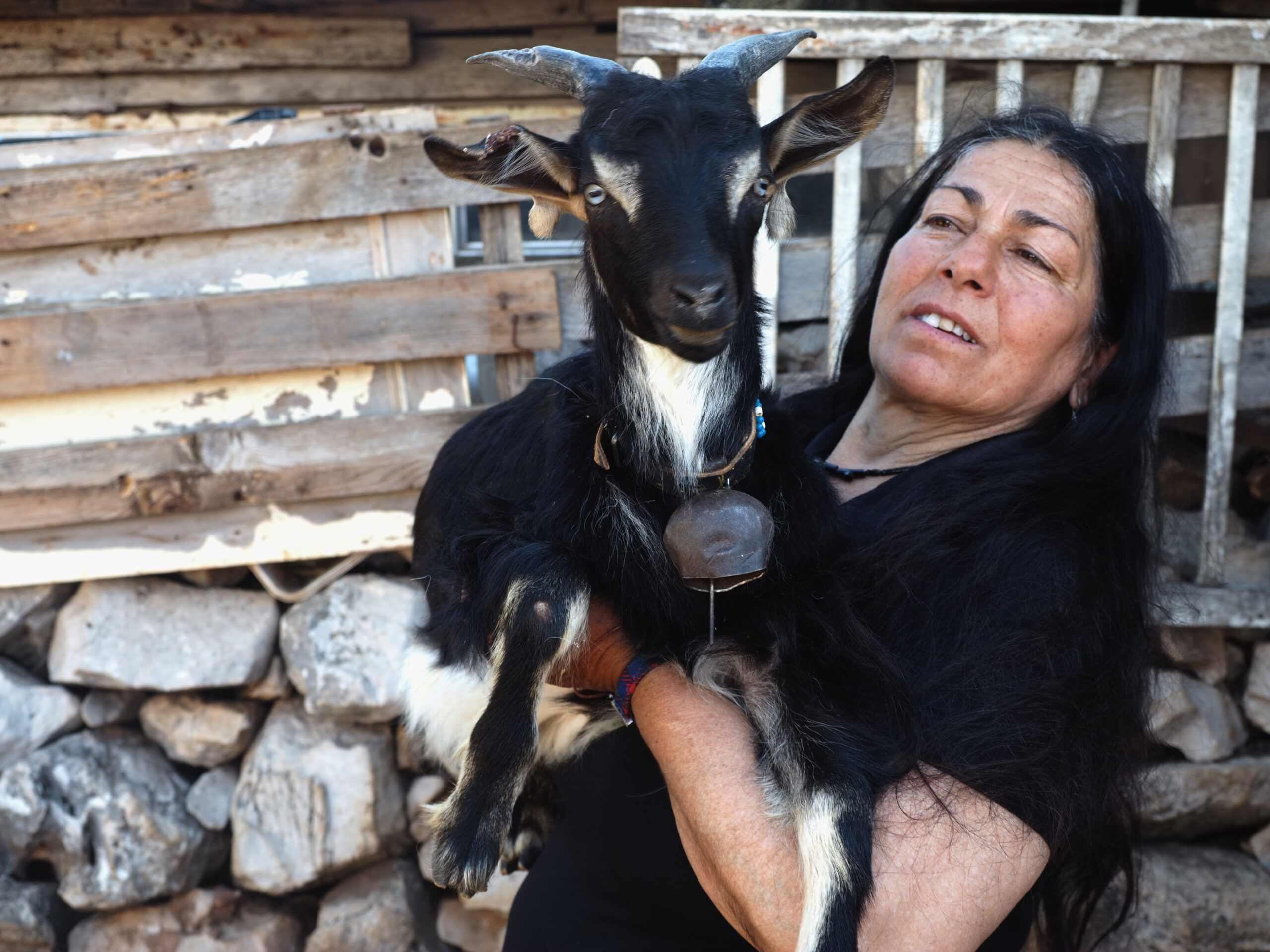 «Ελάτε, καμάρια μου! Ελάτε! Απάνω σε ζωάδικο εγώ δεν θα σας βάλω, δεν θα αντέξει η καρδιά τον πόνο τον μεγάλο». Η Σταυρινή, ανεβασμένη σε έναν σωρό από πέτρες, σε μια χουβέλη, όπως θα έλεγαν οι ντόπιοι, τραγουδά τα στιχάκια της για να μαζέψει γύρω της το κοπάδι. Η στεντόρεια φωνή της χάνεται στα βάθη του οροπεδίου για να εμφανιστούν σιγά σιγά ο Μονογιός, η Λαζαρούλα, ο Δωρακιανός, η Παπαρίζου και το Φυστικοβουτηράκι. Εκατό είναι στο σύνολο τα κατσίκια και τα πρόβατα της Σταυρινής και τα γνωρίζει όλα με το όνομά τους. «Τα καμάρια στο μαντρί μου είναι η μόνη συντροφιά μου, η χαρά στη μοναξιά μου. Τα ’χω και τα καμαρώνω και ποτέ δεν τα βεργώνω», συνεχίζει το τραγούδι της, ταΐζοντας τα ζώα της, η τελευταία από την παλιά γενιά των νομάδων κτηνοτρόφων που ζουν στο Αίπος.