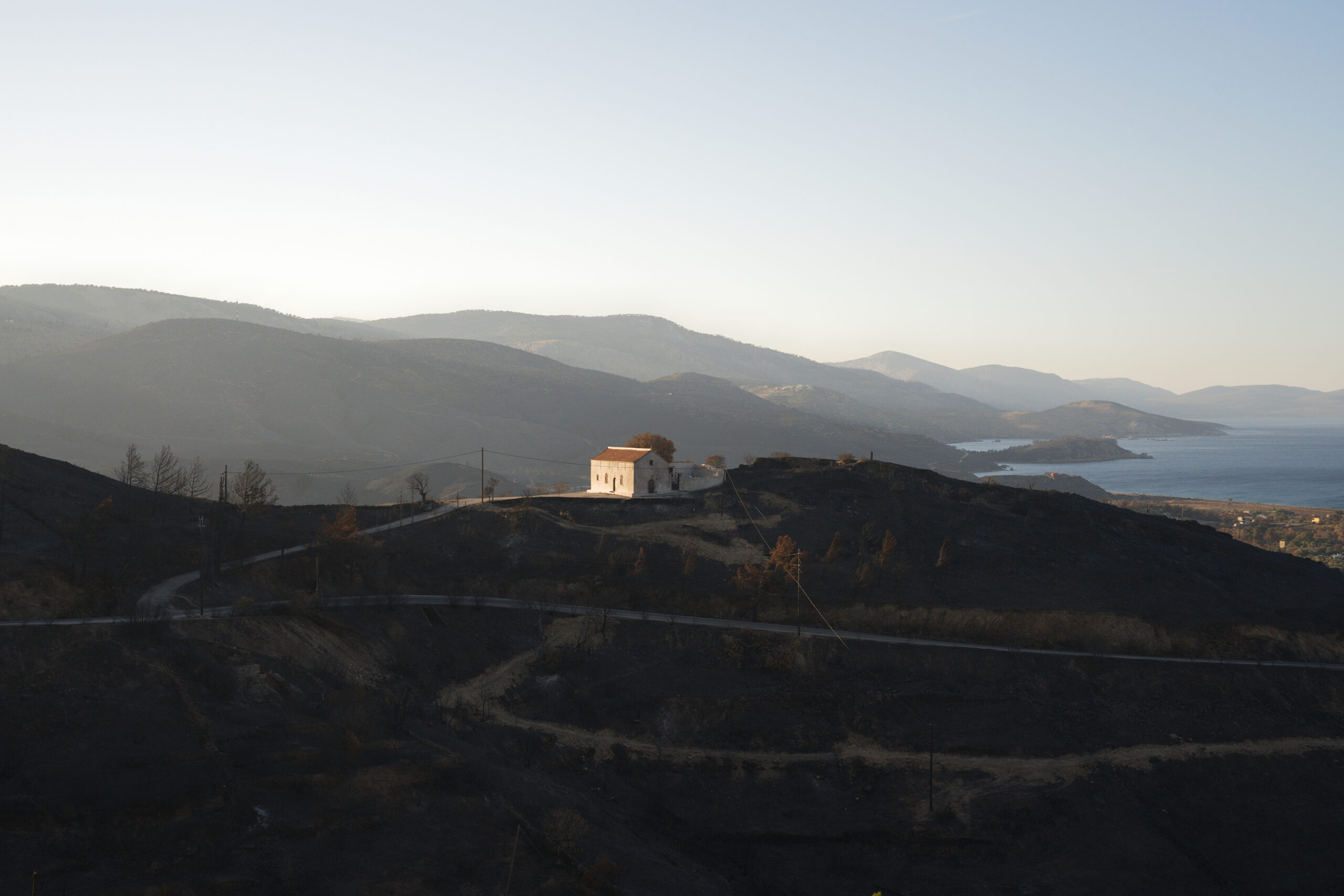 Το ρολόι στο καμπαναριό του Ιερού Ναού των Αγίων Κωνσταντίνου και Ελένης στην Πισπιλούντα Χίου, ένα ορεινό χωριό με καμιά δεκαριά κατοίκους, είναι στραπατσαρισμένο κι εκτός λειτουργίας. Οι δείκτες μένουν ακίνητοι από το απόγευμα της Τρίτης 12 Αυγούστου, όταν η φωτιά που ξέσπασε σε ένα σημείο απέναντι, κοντά σε αιολικό πάρκο, εξαπλώθηκε τόσο αστραπιαία, που πέρασε μέσα από το χωριό. Εξαφάνισε όλο τον ελαιώνα περιμετρικά του οικισμού, προκάλεσε σοβαρές ζημιές σε 15 σπίτια, κατέστρεψε αυτοκίνητα, έκαψε μια μπασκέτα και μια μικρή αποθήκη, όπου οι ντόπιοι είχαν συγκεντρώσει προμήθειες για να γιορτάσουν τον Δεκαπενταύγουστο, και αλλοίωσε το ταμπλό του ρολογιού. Σύμφωνα με το Εθνικό Αστεροσκοπείο Αθηνών, η φωτιά που έκαιγε για τέσσερις ημέρες στη βορειοδυτική Χίο, στον πρώην Δήμο Αμανής, έκαψε συνολικά 70.000 στρέμματα, από τα Λεπτόποδα στον βορρά μέχρι νότια τον όρμο της Βολισσού.