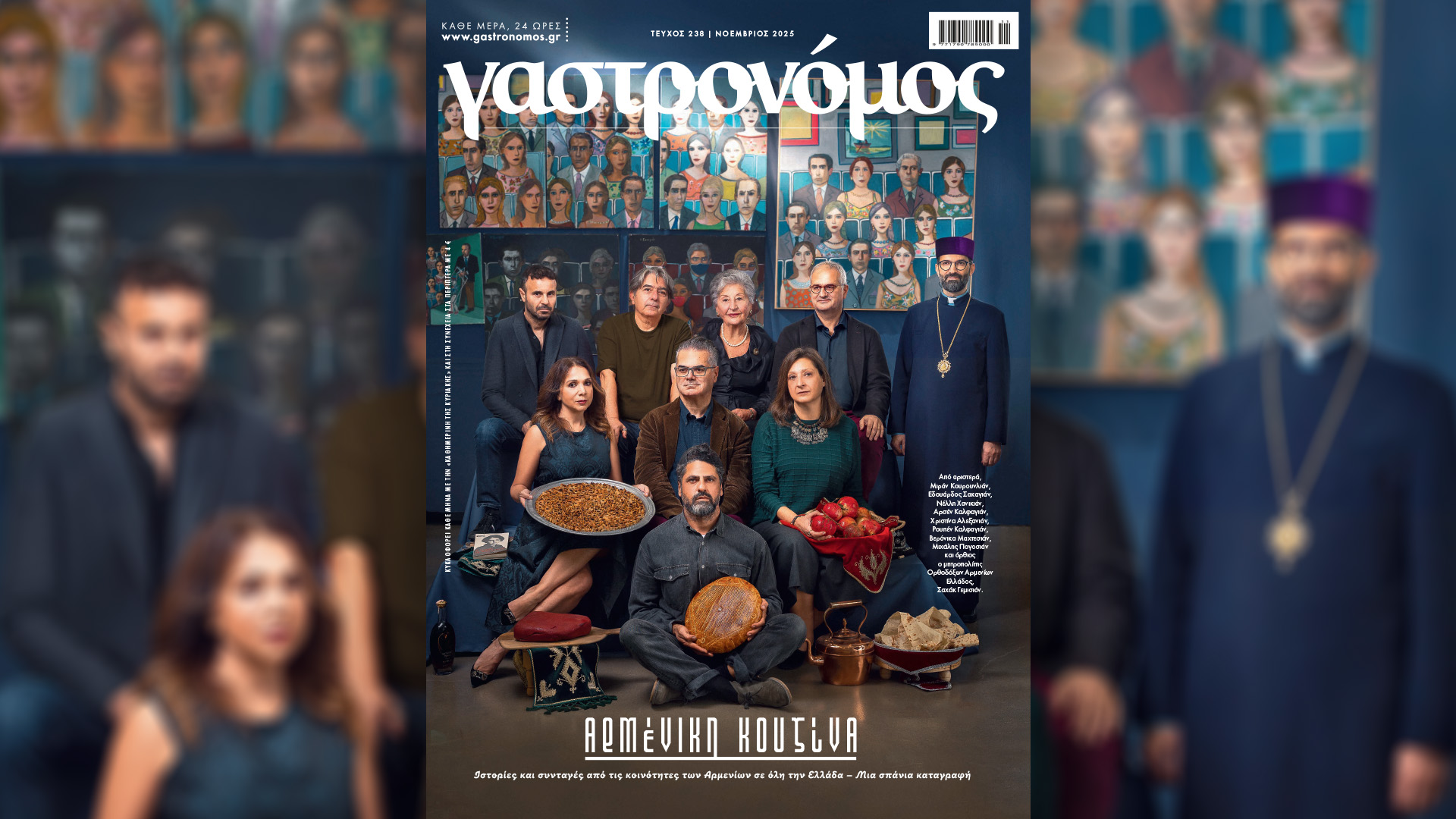 Για το τεύχος Νοεμβρίου συναντήσαμε ανθρώπους της μεγάλης αρμενικής παροικίας της Ελλάδας, οι οποίοι μας εισήγαγαν στις ιδιαιτερότητες μιας κουζίνας γεμάτης συμβολισμούς και μοιράστηκαν μαζί μας φαγητά καρυκευμένα με ιστορίες και αναμνήσεις. Οι συνταγές που καταγράψαμε αφηγούνται την πορεία ενός ξεριζωμένου λαού, που μετά την γενοκτονία αναζήτησε και βρήκε φιλόξενη πατρίδα στην Ελλάδα και αλλού. Εκτός από τους απογόνους των προσφύγων 1922, όμως, συναντήσαμε και Αρμένιους που ήρθαν στην Ελλάδα μετά την κατάρρευση της Σοβιετικής Ένωσης, φέρνοντας μαζί τους μια κουζίνα που είχε ζυμωθεί με επιρροές από άλλες χώρες. Μέσα από όλες αυτές τις καταγραφές, γνωρίσαμε το πλούσιο μωσαϊκό της αρμένικης κουζίνας, που είναι μια κουζίνα πανάρχαια, αγροτική κατά βάση, η οποία στο πέρασμα των αιώνων επηρεάστηκε και εμπλουτίστηκε από πολλές γειτονικές, όπως της Μέσης Ανατολής, της Ρωσίας, της Περσίας, της Μικρασίας.