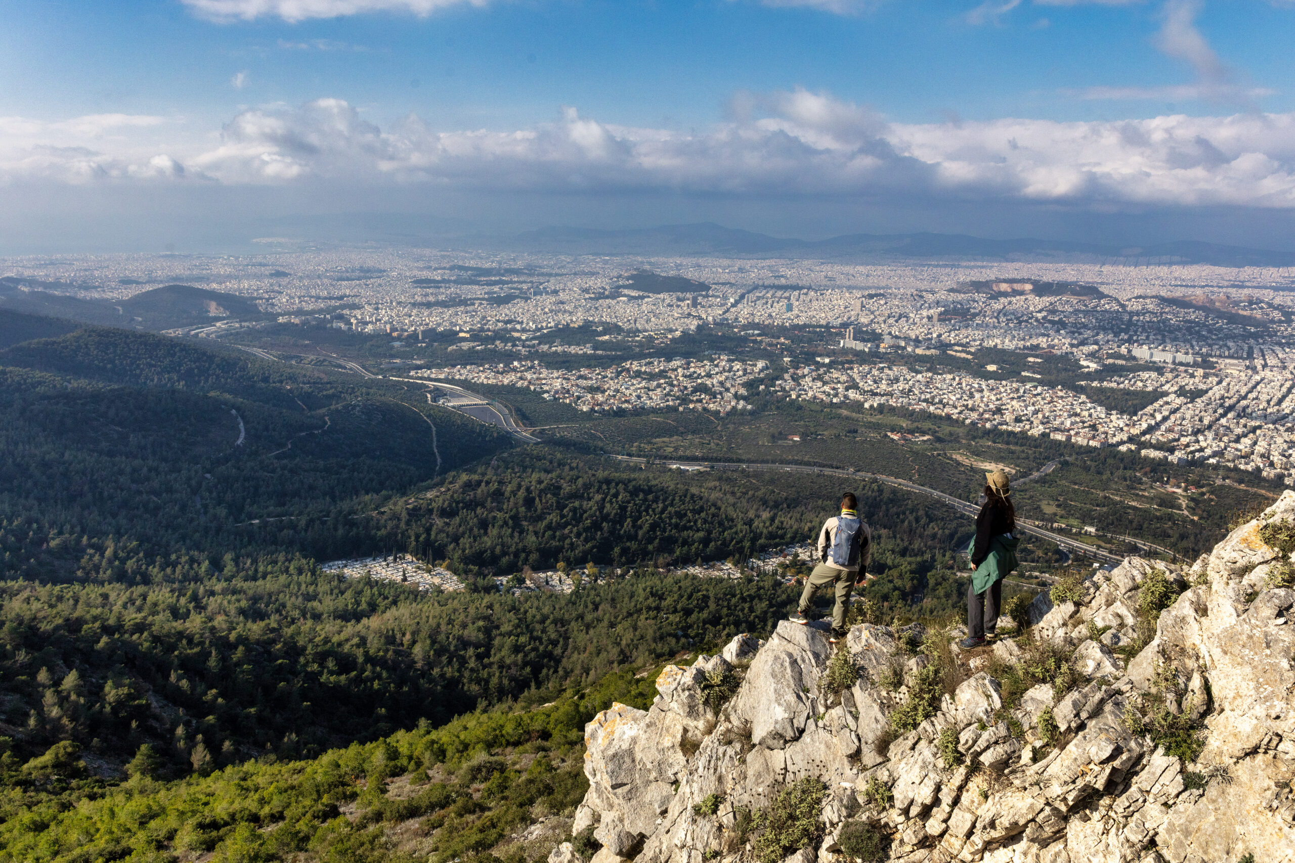 Δύο νεαροί μηχανόβιοι επιταχύνουν με θόρυβο περνώντας από μπροστά μας, πριν χαθούν αμέσως μετά πίσω από μια συστάδα πεύκων. Φωνάζουν δυνατά, με το πρόσωπο στραμμένο προς τον χειμωνιάτικο αττικό ουρανό και με τον παρατεταμένο ήχο της εξάτμισής τους να σπάει την ηρεμία γύρω μας. Είμαστε στον Υμηττό, στα 525 μ. υψόμετρο, και ετοιμαζόμαστε να χτυπήσουμε την πόρτα της Μονής Αστερίου, ενός από τα πολλά μοναστήρια του (εννέα τον αριθμό), οι προσευχές των οποίων «κυκλώνουν το κλεινόν άστυ», όπως μας εξηγεί λίγο αργότερα ο πάτερ Αλέξιος. Ήρθε εδώ το 2013, όταν το μοναστήρι ήταν εγκαταλελειμμένο (θυμάται τις νυχτερίδες που είχαν φωλιάσει), και μαζί με άλλους δύο μοναχούς τελούν καθημερινή λειτουργία. «Ο Υμηττός είναι το Άγιον Όρος της Αθήνας», αναφέρει χαρακτηριστικά στην παρέα μας και μας καλεί στο εσωτερικό.