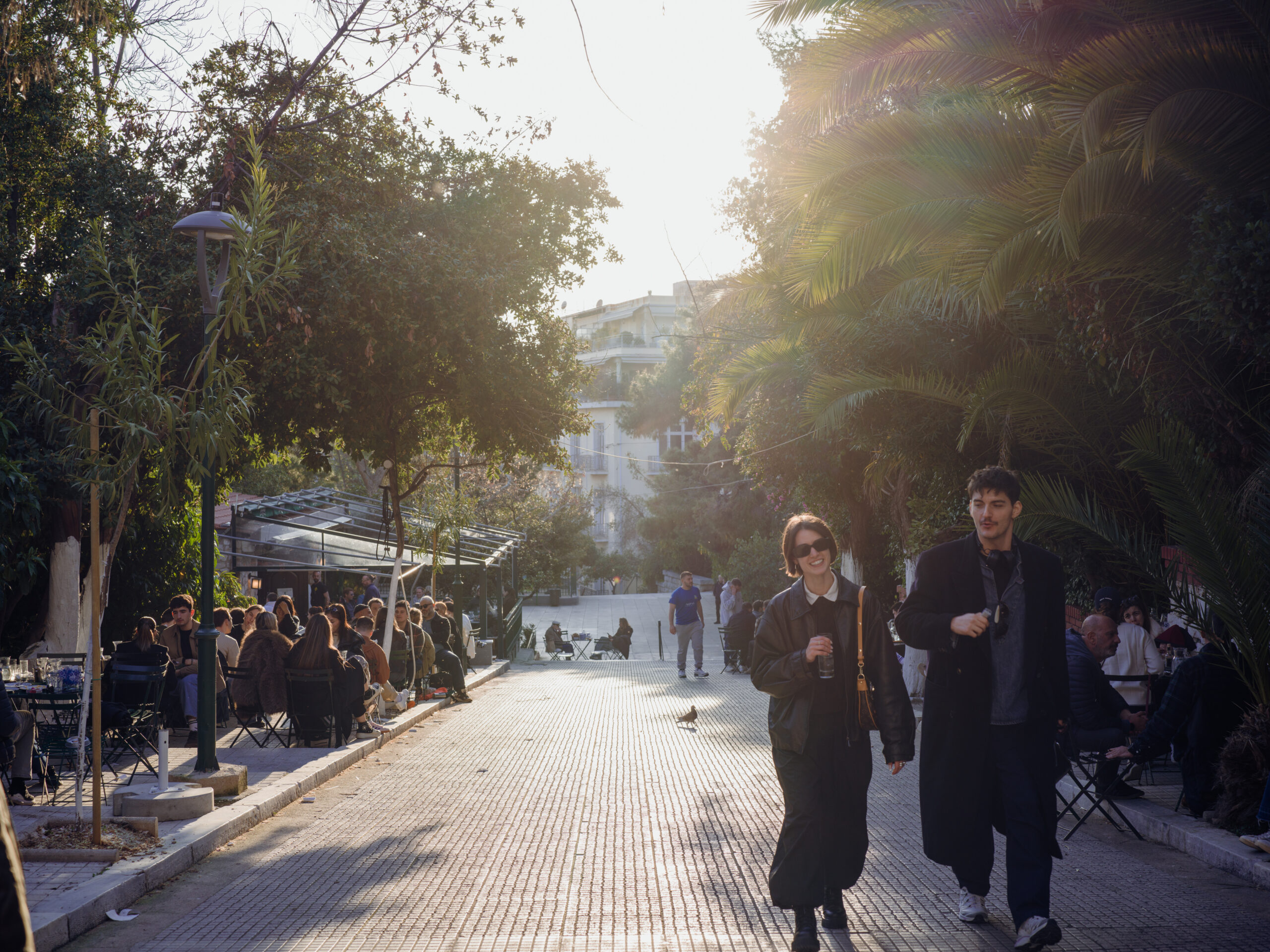 Τις Κυριακές στη Δεξαμενή, ο κόσμος διαβάζει εφημερίδες, οργανώνει παιδικά πάρτι, κάνει τυχαίες γνωριμίες και απολογισμούς εβδομάδας (αλλά και ζωής). Λίγα λεπτά μετά τις 10 το πρωί, κάτοικοι, επισκέπτες και τουρίστες παίρνουν θέσεις στις πράσινες μεταλλικές καρέκλες του ομώνυμου παραδοσιακού καφενείου. Σκιά ή ήλιος; Ιδού η απορία. Η αναμονή στην ουρά μεγαλώνει, τα παγκάκια γεμίζουν, οι φωνές μπλέκονται και η μέρα περνά σε αργή κίνηση πάνω στα τραπεζάκια. Από τον φραπέ στον καπουτσίνο και από εκεί στις τηγανητές πατάτες και στα καλαμαράκια, με την Ακρόπολη στο βάθος να λειτουργεί σαν το μόνο ρολόι: αν οι κίονές της «λιώνουν», τότε το μεσημέρι φτάνει στο τέλος του· αν το χρώμα της «σκουραίνει» και ο ουρανός πίσω της σβήνει, τότε μάλλον έχει πάει εφτά. Απαραίτητο σουβενίρ; Μια φωτογραφία στο ηλιοβασίλεμα, πριν τα γύρω μπαρ γεμίσουν και η πρώτη φουρνιά από θαμώνες επιστρέψει στο σπίτι της.
