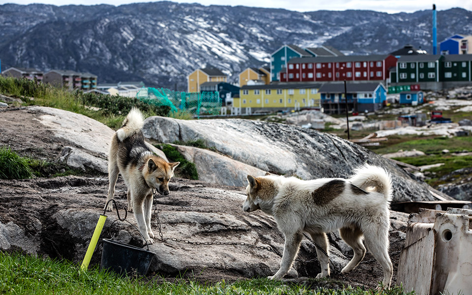 Στις φωτογραφίες σου τα σπίτια των Γροιλανδών μοιάζουν σκανδιναβικά. Η σύγχρονη αρχιτεκτονική της Γροιλανδίας είναι δανέζικη, τα σπίτια είναι ξύλινα και πατούν πάνω σε τσιμεντένιες βάσεις. Φυσικά τα υλικά είναι εισαγόμενα, αφού ξυλεία στη Γροιλανδία δεν υπάρχει. Όπως και στη σκανδιναβική χερσόνησο, τα σπίτια παραδοσιακά βάφονταν σε έντονα χρώματα για να ξεχωρίζουν μέσα στο χιόνι, αλλά και για να διευκολύνουν τον προσανατολισμό, καθώς δεν υπήρχαν οδοί και αριθμοί. Κάθε χρώμα συμβόλιζε και κάποιο επάγγελμα – κίτρινο ο γιατρός, μπλε ο ψαράς, κόκκινο ο μανάβης. Τα παραδοσιακά σπίτια των Ινουίτ, βέβαια, ήταν υπόσκαφα, φτιαγμένα από τύρφη, με ανηφορική είσοδο, ώστε να μένει μέσα η ζεστασιά από τη φωτιά.