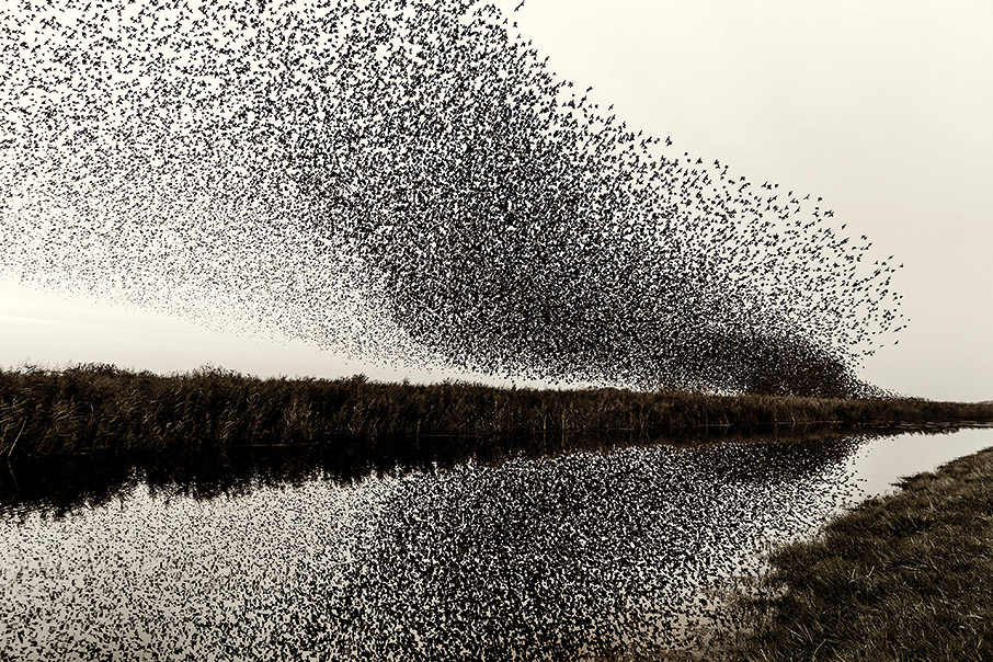 Στη φύση η ομαδικότητα γίνεται υπερδύναμη. Κάθε μέλος της ομάδας μετράει και ενώνει τις δυνάμεις του με τον υπόλοιπο πληθυσμό, ο οποίος το πρωί ψάχνει για τροφή σχηματίζοντας επιμέρους ομάδες και το σούρουπο, λίγο πριν αποσυρθεί στο σημείο που έχει επιλέξει για τη νυχτερινή του διαμονή, συγκεντρώνεται και πάλι. Τα κύματα και οι μοναδικοί κάθε φορά ελιγμοί που βλέπουμε στον ουρανό είναι συνήθως η απάντηση των πτηνών στην απειλή κάποιου θηρευτή. Διαμορφώνοντας αυτή τη γιγαντιαία γροθιά, που αλλάζει απρόβλεπτα το σχήμα της, εμποδίζουν όποιον πάει να τους επιτεθεί. Ο θηρευτής διστάζει, μη γνωρίζοντας πώς να εισχωρήσει στο κοπάδι. Τα πρώτα δύο χρόνια ο Solkaer φωτογράφιζε στη Δανία. Έπειτα, άρχισε να κάνει έρευνα και να ακολουθεί τα ψαρόνια προς την Ισπανία, την Ιταλία, το Ισραήλ και άλλες χώρες.
