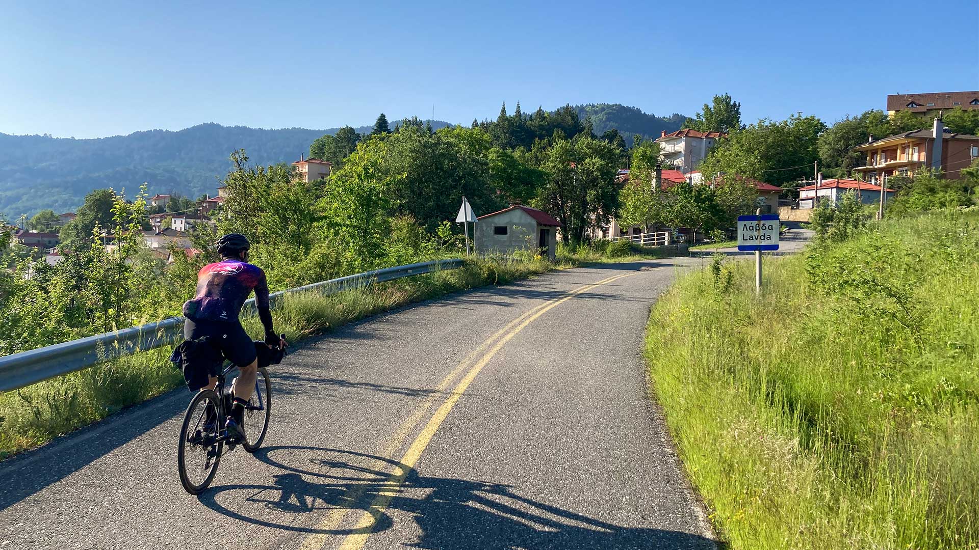 Μπαίνοντας μεσημεράκι στα Πράμαντα, ορμάμε σε έναν φούρνο για φαγητό και αναψυκτικά, που το σώμα μας τα υποδέχεται με αγαλλίαση. Και τι έκπληξη! Συναντάμε τον Ορέστη, έναν φίλο γνωστό στους ποδηλατικούς κύκλους για τις σόλο βόλτες του στα βουνά, και πιάνουμε την κουβέντα. Πηγαίνω σε δύο σούπερ μάρκετ για να αγοράσω αντηλιακό, αλλά δεν βρίσκω. Μάλιστα, στο δεύτερο μου λένε: «Μα καλά, αντιηλιακό στο βουνό;». Μάλλον δεν έχουν ακούσει για τις βλαβερές συνέπειες της έκθεσης στον ήλιο, που είναι πιο έντονος ψηλότερα. Έχει αρκετή ζέστη και υγρασία και δεν καθυστερούμε, γιατί έχουμε ακόμα δρόμο μπροστά μας, οπότε ξανακαβαλάμε προς Άγναντα, με την καταιγίδα να μας ακολουθεί κατά πόδας. Περνάμε τη Ράμια και στρίβουμε αριστερά προς Κυψέλη –και προς την καταιγίδα–, ενώ ο ουρανός νομίζεις ότι θα μας πέσει στο κεφάλι. Αντιμετωπίζουμε ισχυρότατες ριπές αέρα, δείγμα ότι πλησιάζει κατακλυσμός. Ανεβαίνοντας, τσεκάρω στάσεις λεωφορείων, ξωκλήσια και οτιδήποτε θα μπορούσε να μας προστατέψει. Ο Δίας όμως φαίνεται πως είναι μαζί μας, ρίχνοντας τους κεραυνούς του μακριά, και μας αφήνει να φτάσουμε στην Κυψέλη λίγα λεπτά πριν ανοίξουν οι ουρανοί. Μόλις η καταιγίδα κοπάζει, οδηγούμε στην τελευταία δασωμένη ανηφόρα και στη συνέχεια κατηφορίζουμε στο Βουργαρέλι για την τελευταία διανυκτέρευση.