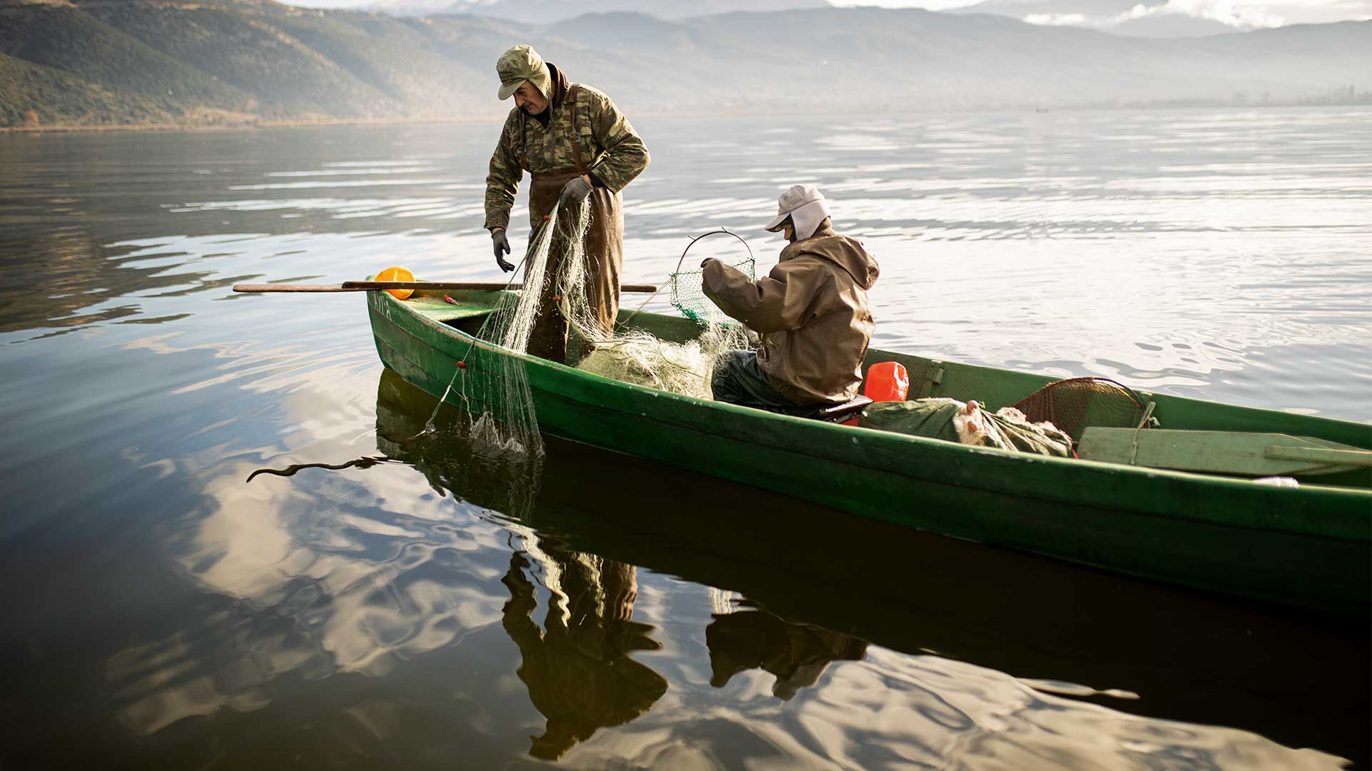 Την ίδια ώρα, ο Κώστας Λάππας, πρόεδρος του συνεταιρισμού αλιέων, που είναι ο παλαιότερος της Ελλάδας, μπαίνει στο καΐκι του και πλέει προς την Ντραμπάτοβα. Μέσα στην πυκνή ομίχλη, η οποία κατακάθεται κάθε πρωί στη λίμνη Παμβώτιδα. Θα πιάσει στα δίχτυα γριβάδια και πεταλούδες και έπειτα θα παραδώσει την ψαριά στον έμπορο, που περιμένει στην απέναντι ακτή, προς 1-2,5 ευρώ το κιλό. Τα περισσότερα αλιεύματα θα φύγουν απευθείας για Ρουμανία, όπως όλων των ψαράδων της Παμβώτιδας.