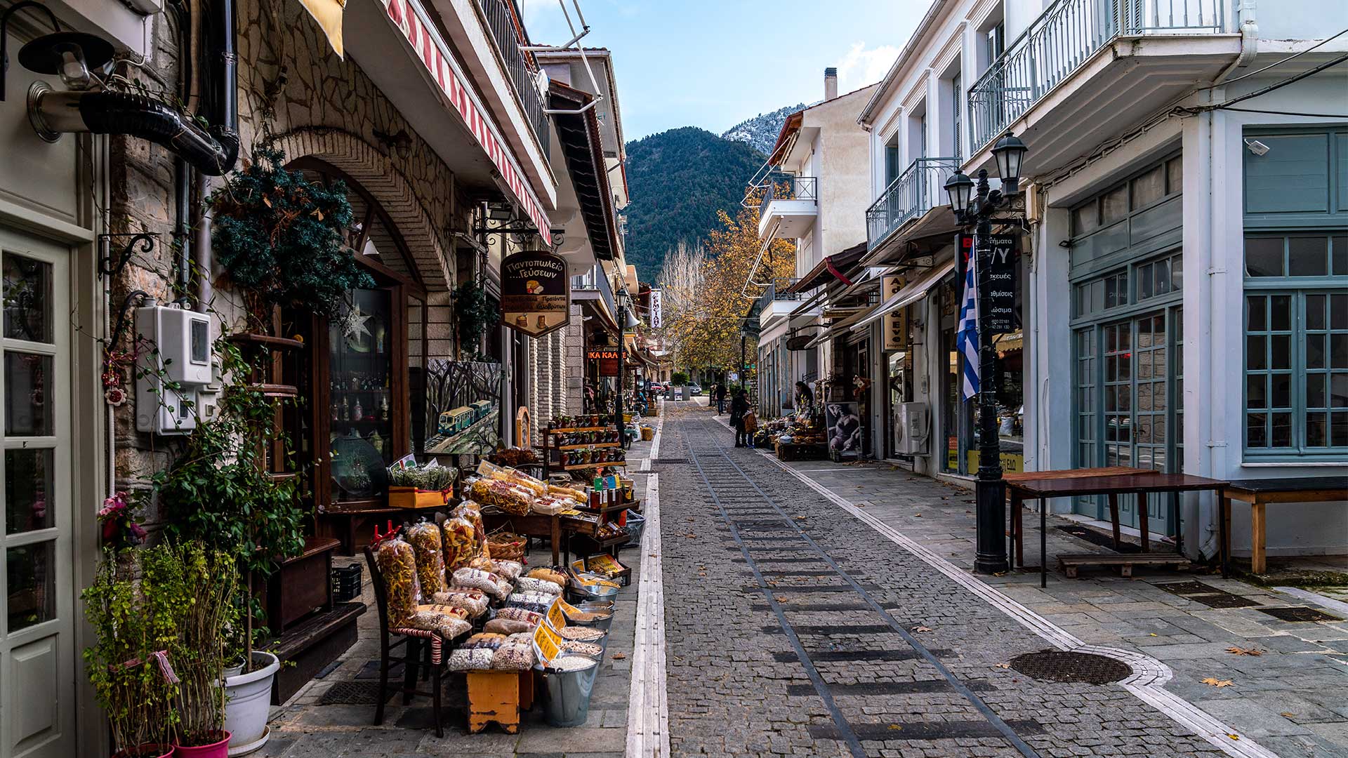 Αρχίστε την ημέρα σας εκμεταλλευόμενοι την ευκαιρία να περπατήσετε στον πεζόδρομο της 25ης Μαρτίου και να επισκεφτείτε τα παντοπωλεία με τα τοπικά προϊόντα, αφού τα Σαββατοκύριακα μέχρι το μεσημέρι το κέντρο των Καλαβρύτων είναι αρκετά ήσυχο, καθώς ο περισσότερος κόσμος βρίσκεται στο χιονοδρομικό κέντρο. Εμείς, αφήσαμε το αυτοκίνητο και πήγαμε στο «Νερό και Αλεύρι», όπου ήπιαμε καφέ και φάγαμε λουκουμάδες με διάφορες πραλίνες (25ης Μαρτίου 44, τηλ. 26920-29572).