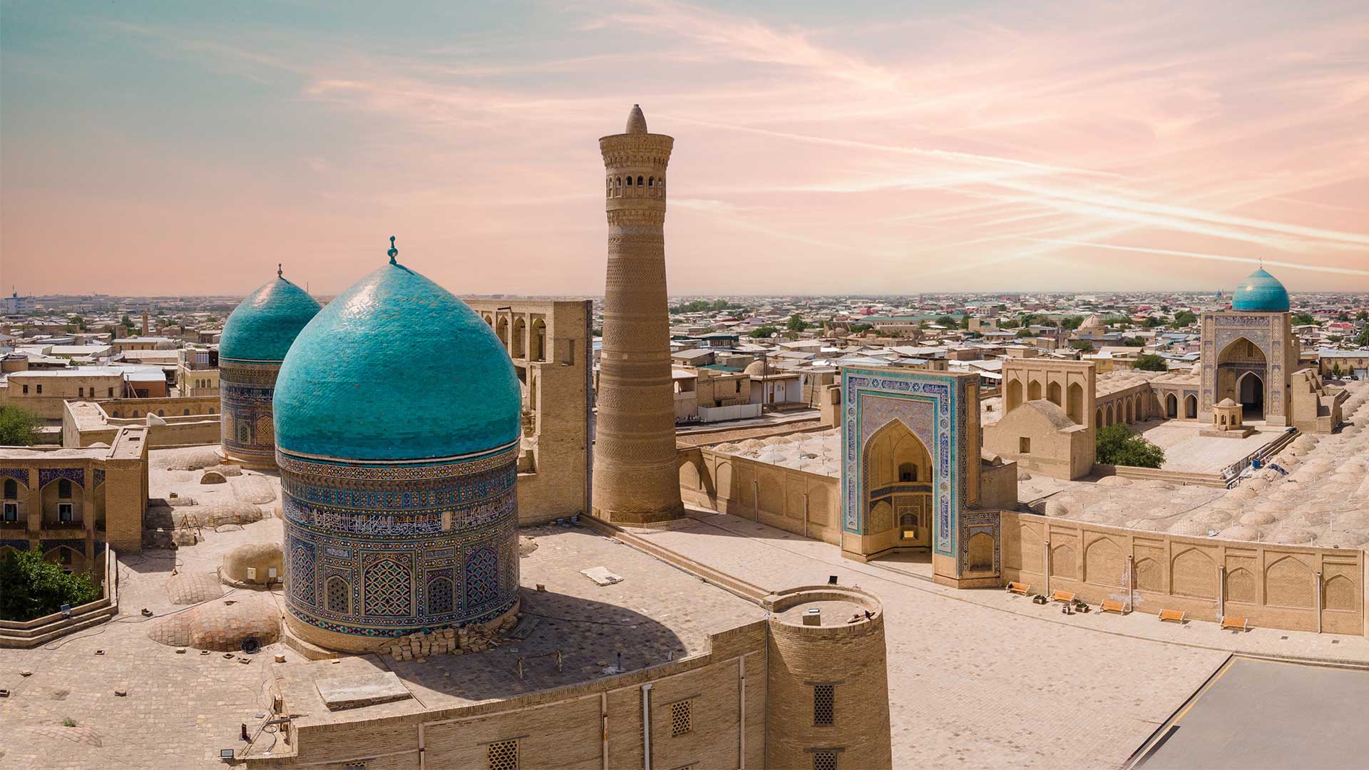 Η ιστορική πόλη της Μπουχάρα είναι ίσως η πιο ενδιαφέρουσα παλιά πόλη της Κεντρικής Ασίας με το μαυσωλείο Samani του 10ου αιώνα, το χαμάμ Bozori-Kord του 14ου αιώνα, τον μιναρέ Kalon ύψους 46 μέτρων και πολλά θρησκευτικά σχολεία και ιερά των Σούφι. Από την άλλη, η Σαμαρκάνδη, που κατακτήθηκε από τον Μέγα Αλέξανδρο και τον Τζένγκις Χαν και έγινε η πρωτεύουσα της αυτοκρατορίας του Ταμερλάνου, είναι μια εντυπωσιακή πόλη με τα διάσημα γαλάζια μνημεία του Ουζμπεκιστάν, το μαυσωλείο Gur-e Amir, το τζαμί Bibi-Khanum, που χτίστηκε με εντολή του Ταμερλάνου για να τιμήσει την αγαπημένη του, και την νεκρόπολη Shah-i-Zinda με τους αυτοκρατορικούς τάφους.