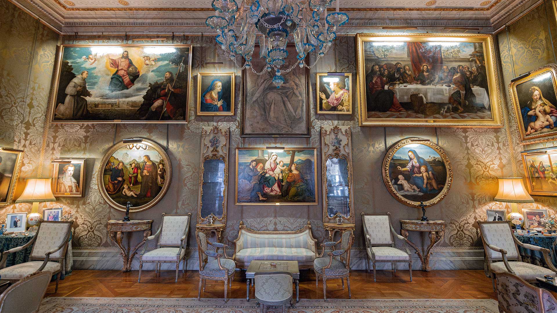 Η κεντρική σκάλα, κάτω από έναν φωτεινό θόλο, οδηγεί στην πινακοθήκη με τα πορτρέτα που πιστοποιούν τους οικογενειακούς δεσμούς των Άλμπα με τον βρετανικό Οίκο των Στιούαρτ, ενώ σε μια σειρά από αλληλοσυνδεόμενα δωμάτια υπάρχει μια υπέροχη συλλογή έργων τέχνης που αποκαλύπτει την πλούσια ιστορία της οικογένειας.