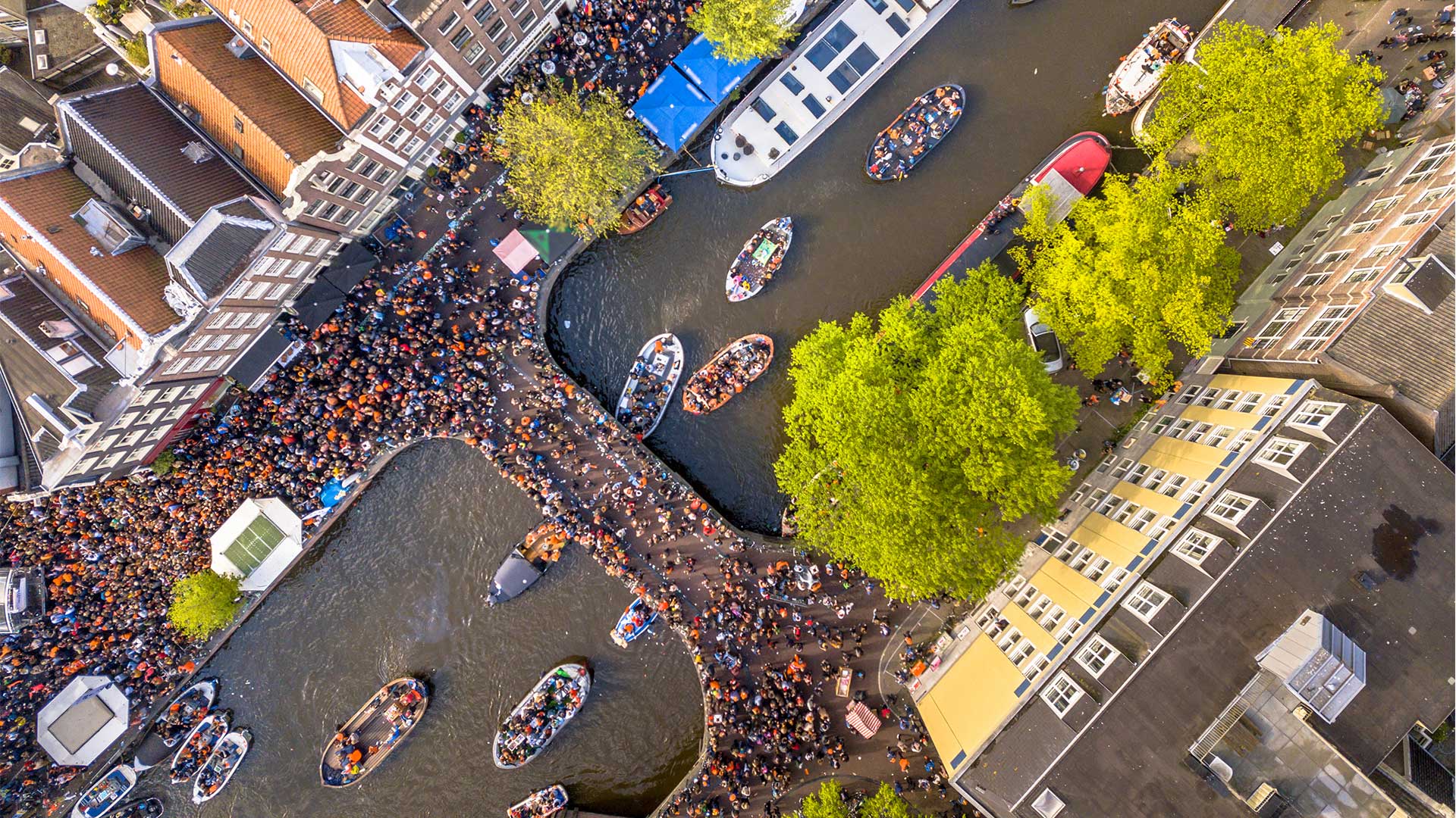 Κάθε χρόνο, στις 27 Απριλίου, η Ολλανδία ντύνεται στα πορτοκαλί και εκατοντάδες χιλιάδες επισκέπτες συγκεντρώνονται στο Άμστερνταμ για να γιορτάσουν τα γενέθλια του βασιλιά με πάρτι στους δρόμους, συναυλίες, υπαίθριες αγορές και πολλές εκδηλώσεις. Η «Μέρα του Βασιλιά» (King’s Day ή Koningsdag), αν και προσαρμόζεται κάθε φορά στο φύλο και τα γενέθλια του εκάστοτε μονάρχη, εγκαινιάστηκε το 1891 και γιορτάζεται σε ολόκληρη τη χώρα, συμπεριλαμβανομένης της Αρούμπα, του Κουρασάο, του Αγίου Μαρτίνου και της Μπονέρ στην Καραϊβική. Φυσικά, το Άμστερνταμ κρατάει τα σκήπτρα.