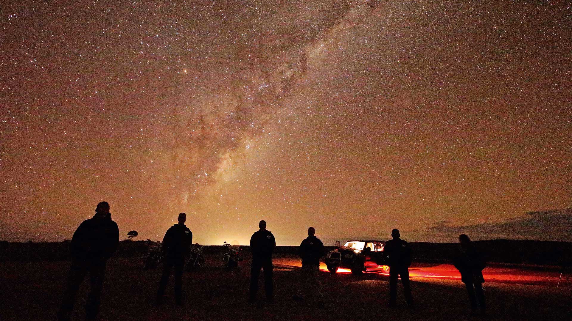 Φτάσαμε πεινασμένοι, αργά τη νύχτα, σε ένα σημείο όπου μπορούσαμε να διανυκτερεύσουμε ελεύθερα. Είχαμε οδηγήσει μέσα στα άγρια χωράφια και στα δάση και ουκ ολίγες φορές είδαμε κουφάρια στην άκρη ή σιλουέτες ζώων να εξαφανίζονται την τελευταία στιγμή από μπροστά μας. Δύο βαν ήταν ήδη παρκαρισμένα. Αναρωτήθηκα ποια ήταν η ιστορία τους, τι είχε οδηγήσει εκείνους τους ταξιδιώτες αυτό το βράδυ στην ερημιά. Μαγειρέψαμε μακαρόνια με σάλτσα στο γκάζι με όσες δυνάμεις μάς είχαν απομείνει και φάγαμε με βουλιμία. Ο αέρας τώρα βούιζε ανάμεσα στα δέντρα, έφερνε μαζί του έναν ήχο που δεν είχαμε ξανακούσει ποτέ. Το «γέλιο» της κακαμπούρα, του σαρκοφάγου πτηνού που κατοικεί στην ανατολική Αυστραλία, είναι αλλόκοτο. Ήταν θαρρείς και τα σμήνη στις κορφές των δέντρων είχαν μόλις αντιληφθεί την παρουσία μας. Πίσω από τις φυλλωσιές, στον ουρανό, ο Milky Way λαμπύριζε πιο ευδιάκριτος από ποτέ. Όταν αποσυρθήκαμε κουρασμένοι στο στρώμα των πίσω καθισμάτων, φωσφόριζε ακόμη έξω από τα παράθυρα.