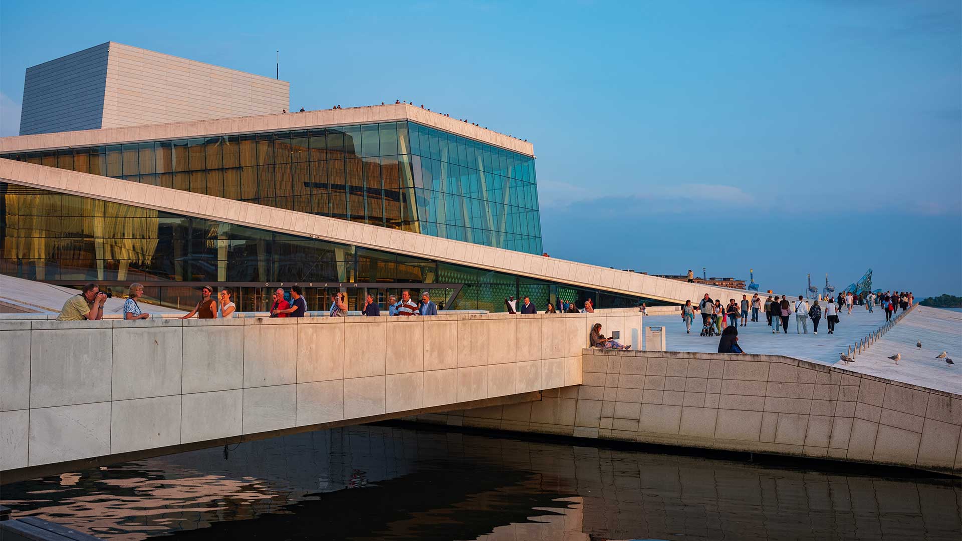 Λίγο παρακάτω θα δείτε το εντυπωσιακό κτίριο της Όπερας (Kirsten Flagstads plass 1), έδρα του Εθνικού Μπαλέτου της Νορβηγίας, που έχει αποσπάσει σημαντικά αρχιτεκτονικά βραβεία. Εκτός από το φουαγιέ, αξίζει να επισκεφθείτε και την εξωτερική επικλινή πλευρά του, που οδηγεί στην οροφή. Δίπλα στην Όπερα, θα δείτε ένα ακόμα ενδιαφέρον από αρχιτεκτονικής άποψης κτίριο. Πρόκειται για τη Δημόσια Βιβλιοθήκη Deichman (Anne-Cath. Vestlys plass), που εγκαινιάστηκε το 2020 και αποτελεί τον νέο δυναμικό πυλώνα πολιτισμού της πόλης. Εκτός από αναγνωστήρια, διαθέτει επίσης σινεμά και καφέ.