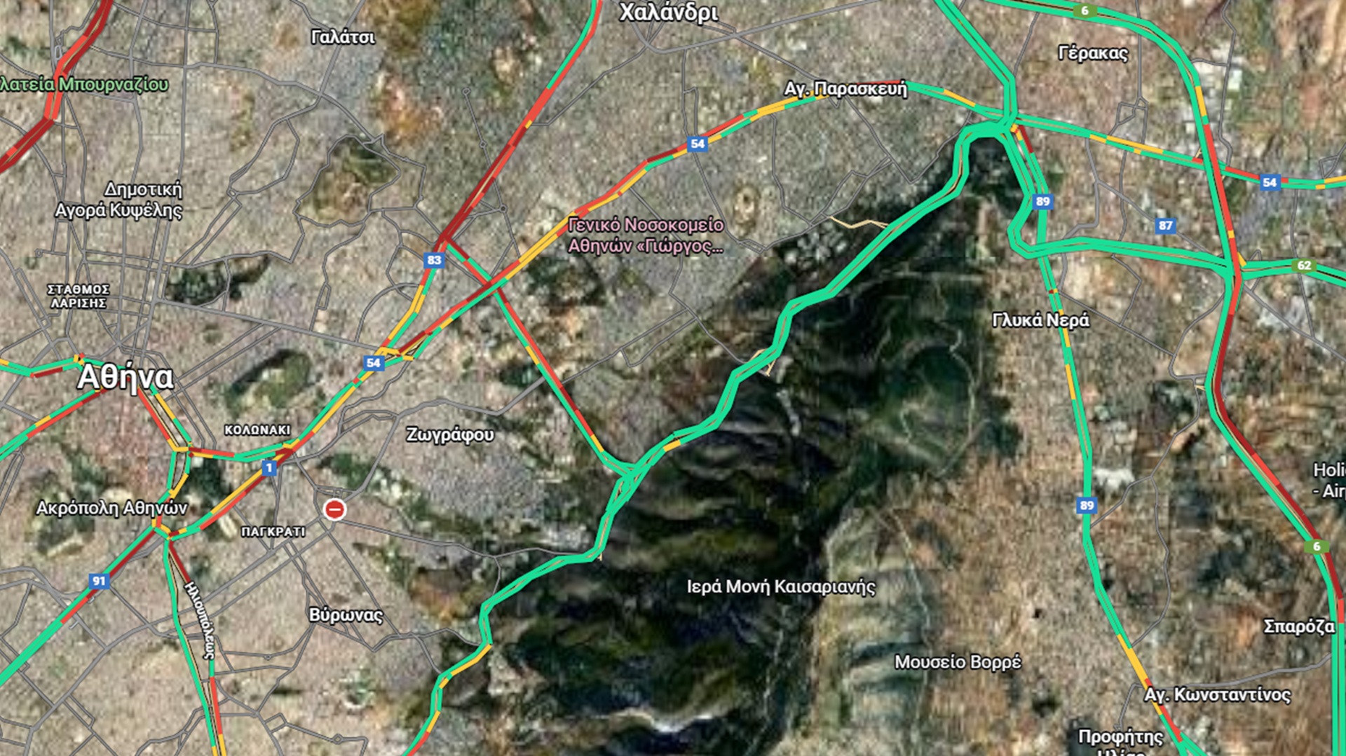 Η κάθοδος της Μεσογείων ταλαιπωρεί πολύ τους οδηγούς σήμερα λόγω και ενός ατυχήματος νωρίτερα στο ύψος του Χολαργού, ενώ βελτιωμένη είναι η εικόνα στην Περιφερειακή του Καρέα και στη παραλιακή λεωφόρο Ποσειδώνος.
