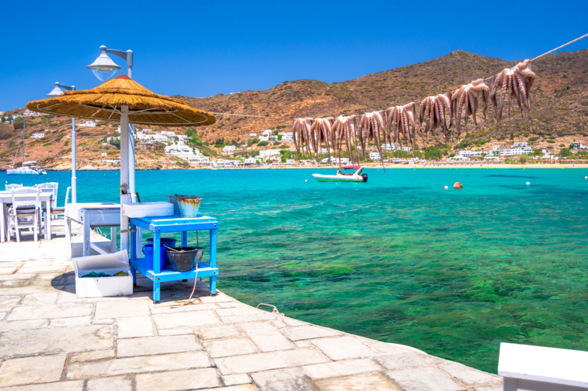 Κυκλάδες χωρίς τυρί δεν νοούνται, γι’ αυτό φροντίστε να δοκιμάσετε τα τυροκομικά προϊόντα της Ιου πριν πάρετε το καράβι του γυρισμού. Πέρα από νόστιμη γραβιέρα και μυζήθρα, η Ιος παράγει και τα δικά της ιδιαίτερα τυριά. Το ξινό, όπως υποδηλώνει το όνομά του, είναι όξινο και κρεμώδες, ενώ παρόμοια υφή, αλλά πολύ πιο έντονη και πιπεράτη γεύση έχει το σκοτύρι, με έντονο το άρωμα από θρούμπι. Η τριλογία Ομήρου, πάλι, ονομάζεται έτσι διότι φτιάχνεται με αίγειο, πρόβειο και αγελαδινό γάλα, ένας συνδυασμός που του χαρίζει πλούσια και μεστή γεύση.