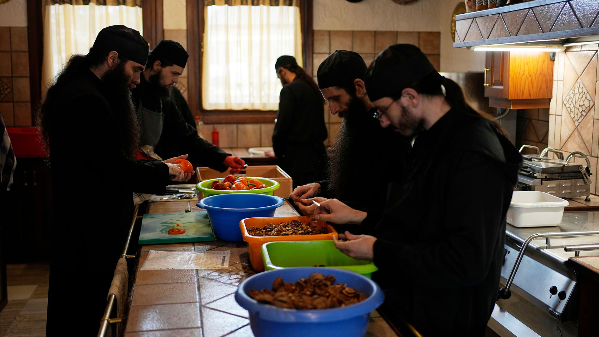 Σε έναν καταπράσινο παραθαλάσσιο λόφο στην κεντρική Ελλάδα, 40 μοναχοί ακολουθούν πιστά αυτούς τους κανόνες στο Μοναστήρι των Αγίων Αυγουστίνου και Σεραφείμ. Οι μοναχοί καλλιεργούν οι ίδιοι το μεγαλύτερο μέρος των τροφίμων τους στους κήπους της μονής.