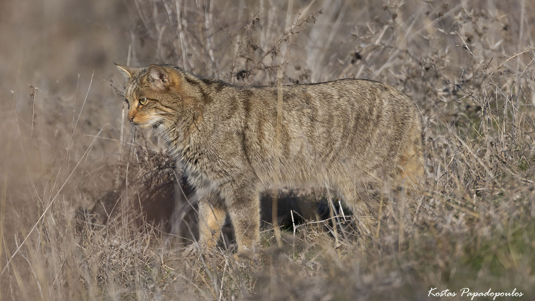 Εναν αγριόγατο απαθανάτισε ο φωτογραφικός φακός στη λίμνη Κερκίνη, κατά τη διάρκεια απογραφής υδρόβιων πουλιών.