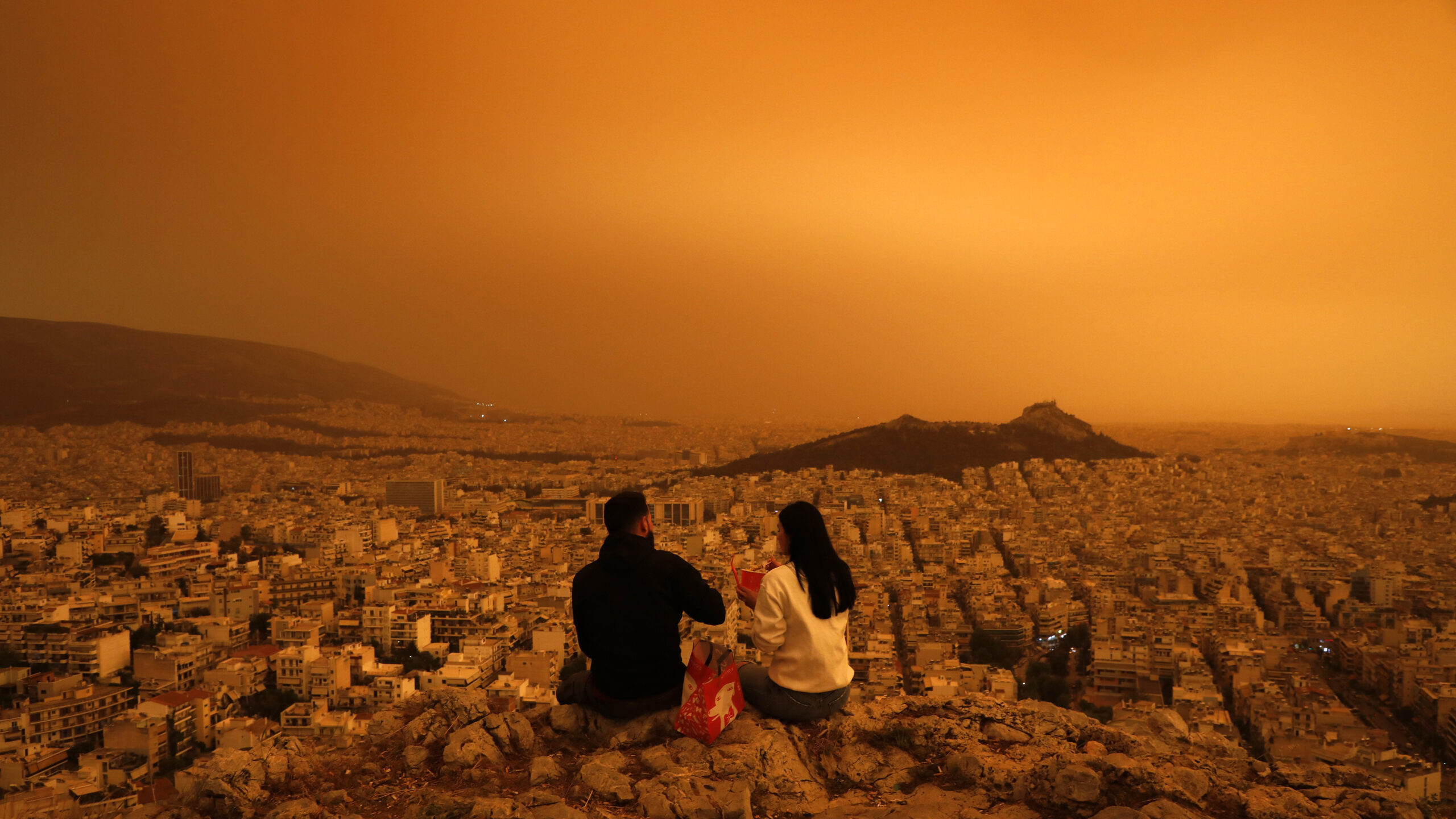 Το timelapse meteo.gr από τις κάμερες εμφανίζεται η πορεία του ισχυρού επεισοδίου μεταφοράς σκόνης από τη Σαχάρα που κάλυψε τον αττικό ουρανό, «βάφοντάς» τον έντονο πορτοκαλί.