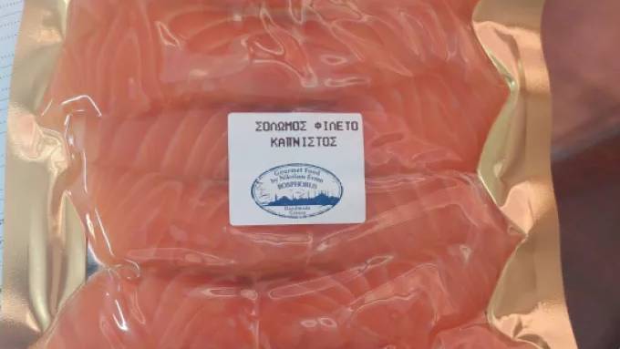 Συγκεκριμένα, πρόκειται για καπνιστό σολομό φιλέτο με την εμπορική ονομασία «GOURMET FOOD BOSRHOROUS», το οποίο διακινείται στην Ελλάδα σε συσκευασίες των 240 g, από την επιχείρηση «Νικόλαος Γ. Evren» (Σαλαμίνος 50, Καλλιθέα Αττικής).