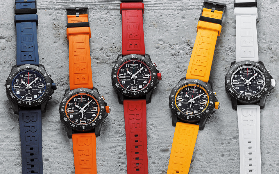 Τα Breitling Endurance Pro κυκλοφορούν σε ωραία δυναμικά χρώματα: πορτοκαλί, κόκκινο, κίτρινο, λευκό και μπλε. Τα καντράν τους είναι μαύρα, με τρεις μετρητές, ευμεγέθεις αραβικούς αριθμούς στις ενδείξεις των ωρών και τους δύο βασικούς κεντρικούς δείκτες επενδυμένους με Super-LumiNova.