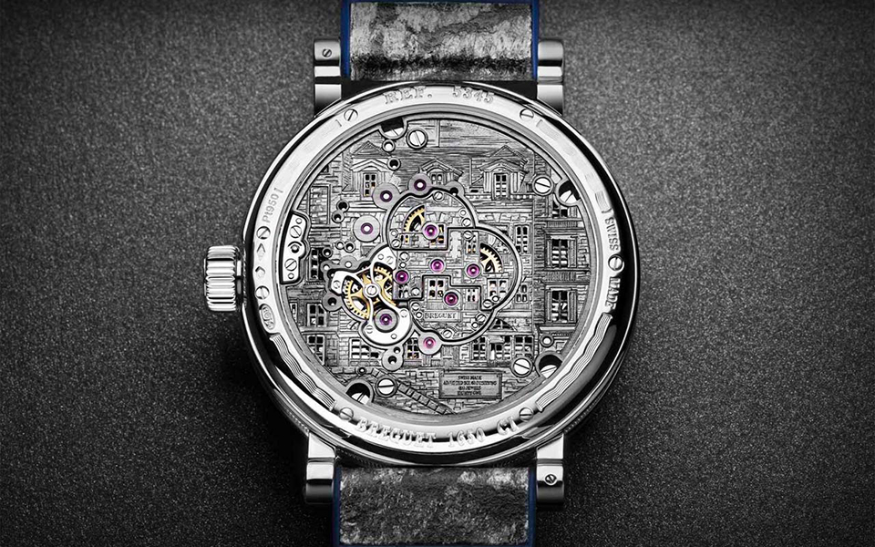 Ακόμη και το παραμικρό εξάρτημα του μηχανισμού του έχει χειροποίητο φινίρισμα ενώ στο πίσω μέρος του ρολογιού είναι περίτεχνα χαραγμένη η εικόνα του περίφημου κτηρίου.