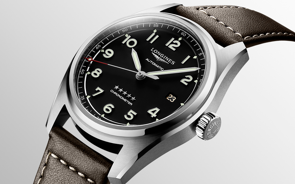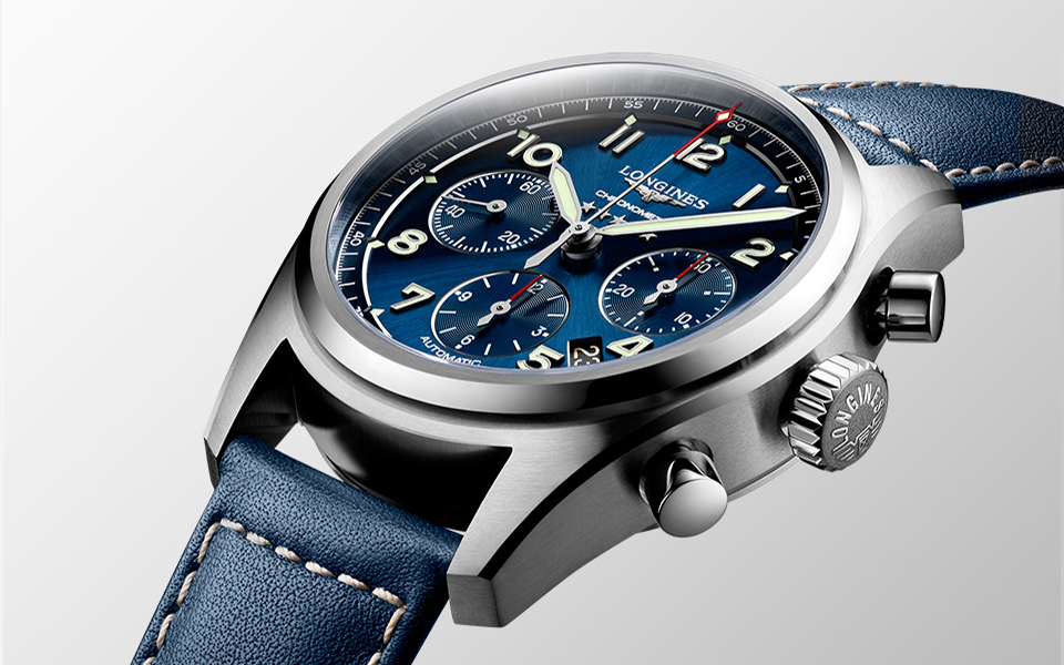 Τα νέα Spirit της Longines αγκαλιάζουν τον καρπό είτε με ατσάλινο μπρασελέ με σατινέ και γυαλισμένο φινίρισμα είτε με λουράκι από λείο δέρμα (σκούρο καφέ, μπεζ-καφέ ή σκούρο μπλε) με λευκές ραφές.