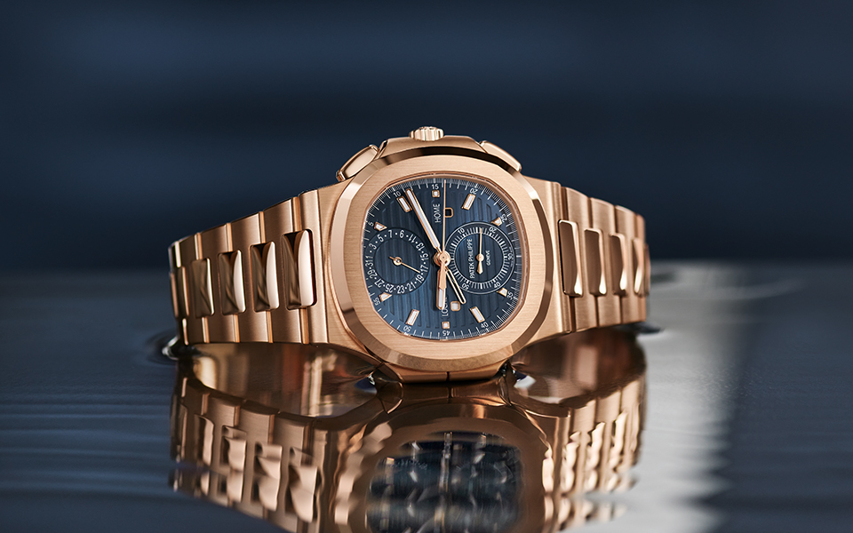 Εδώ τα πράγματα σοβαρεύουν περισσότερο, αφού έχουμε ένα υψηλής μηχανικής πολυπλοκότητας Nautilus σμιλεμένο εξολοκλήρου από ευγενές μέταλλο. Το Nautilus Ref. 5990/1R που είχαμε γνωρίσει σε έκδοση από ατσάλι το 2014 κυκλοφορεί φέτος σε μία πραγματικά συναρπαστική έκδοση από ροζ χρυσό 18Κ με πολύ ωραίο μπλε καντράν. Ο μηχανισμός του υποστηρίζει έναν flyback χρονογράφο με λειτουργία Travel Time.