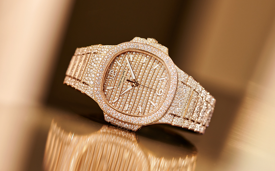 Και αυτή είναι η πιο βαρύτιμη εκδοχή του Nautilus για τη φετινή χρονιά. Πρόκειται για ένα haute joaillerie ρολόι από ροζ χρυσό, στολισμένο παντού με διαμάντια: στη διαμέτρου 35,2mm κάσα, στο καντράν και στο μπρασελέ. Όπως θα παρατηρήσετε, τα διαμάντια είναι διαφόρων μεγεθών, ώστε να αναδεικνύουν όσο το δυνατόν περισσότερο τα διάφορα σχεδιαστικά μέρη του ρολογιού: το σχήμα του που μοιάζει με φινιστρίνι πλοίου, το κυματοειδές καντράν, τους περίτεχνους συνδέσμους στο μπρασελέ. Τα 2.553 διαμάντια του έχουν συνολικό βάρος 12,69 καράτια!