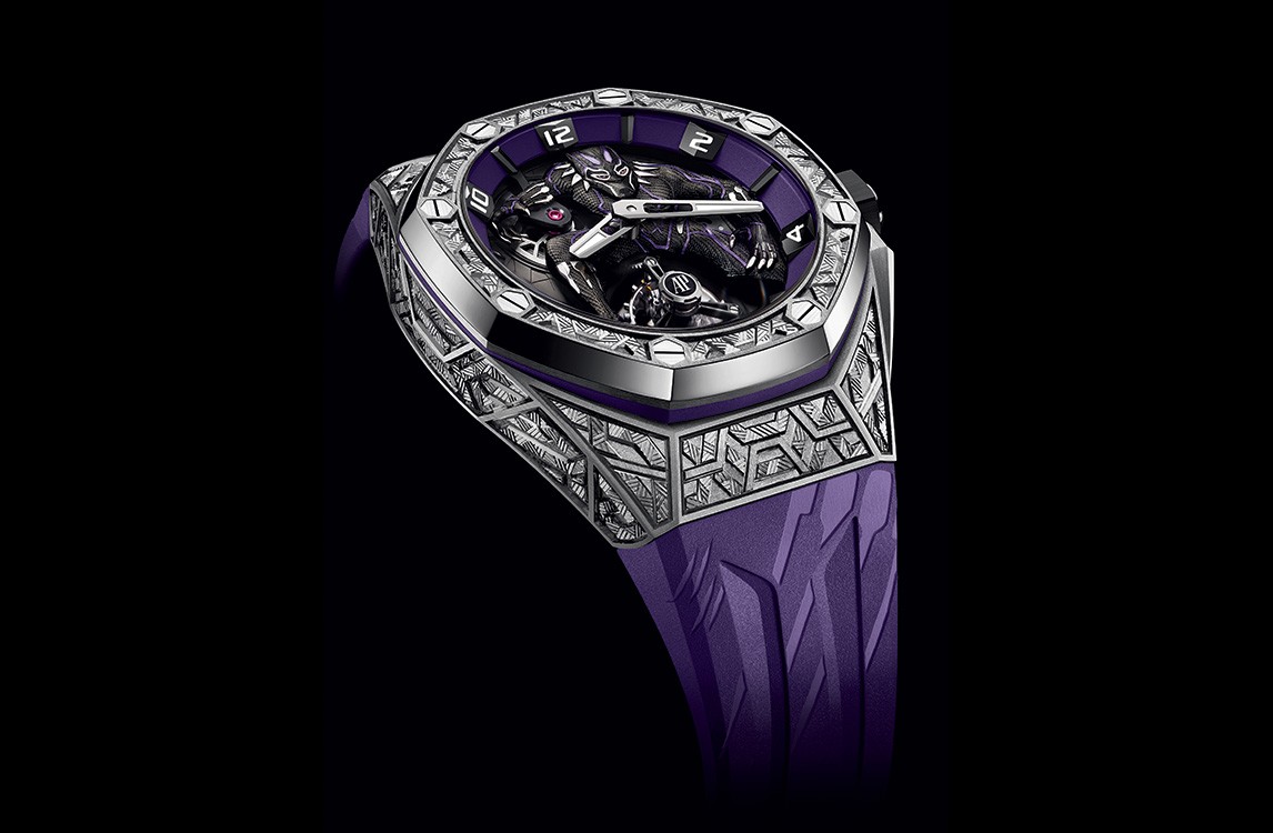 Στα τέλη Μαρτίου σας παρουσιάσαμε τις νέες δημιουργίες της Audemars Piguet και σας ανακοινώσαμε την συνεργασία της με την Marvel, την κορυφαία εταιρεία στον τομέα των κόμικς. Ο πρώτος καρπός αυτής της συνεργασίας είναι ήδη εδώ. Είναι το νέο Royal Oak Concept “Black Panther” Flying Tourbillon, ένα ρολόι που φέρει τρισδιάστατη στο καντράν του τη φιγούρα του Μαύρου Πάνθηρα και μπορεί να το αποκτήσει κάποιος έναντι 150 χιλιάδων ελβετικών φράγκων (περίπου 136.500 ευρώ). Κυκλοφορεί σε 250 συλλεκτικά αντίτυπα και είναι το πρώτο από μία σειρά ρολογιών με θέμα τους υπερήρωες της Marvel.